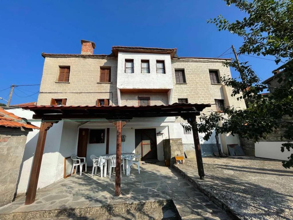 Πωλείται μέσα σε οικόπεδο 350τμ μια διώροφη πετρόχτιστη και επιπλωμένη μονοκατοικία 200τμ με εσωτερική και εξωτερική σκάλα . Ο ισόγειος όροφος αποτελείται από τον αποθηκευτικό χώρο , το λεγόμενο κελάρι και από ένα μικρό καθιστικό με τζάκι. Ακολουθεί ένας ενδιάμεσος χώρος που οδηγεί στην κουζίνα η οποία έχει τζάκι και παραδοσιακό ξυλόφουρνο. Τέλος υπάρχει το μπάνιο και ένα ευρύχωρο χωλ που με μια ξύλινη εσωτερική σκάλα οδηγεί στον επάνω όροφο . Εκεί υπάρχουν έξι υπνοδωμάτια , εκ των οποίων το ένα με τζάκι με ξύλινα ,λουστραρισμένα πατώματα και ξύλινα ταβάνια με όμορφη επένδυση. Τα δωμάτια επικοινωνούν με ένα μικρό σαλονάκι.Ιδανικό για ξενώνα.