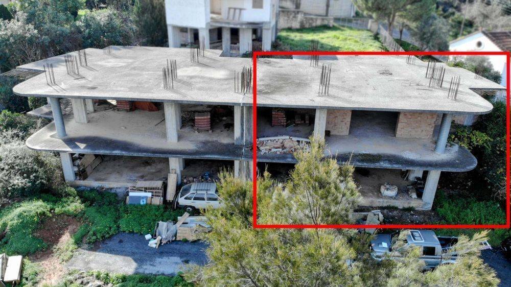 Part of an unfinished building of 200 square meters for sale, in the Therisos - Varipetro area. It is a bright property. It consists of two apartments, a closed garage and a warehouse. On the ground floor, one apartment of 60 sq.m. it is designed for a single space kitchen living room, one bedroom, bathroom and terrace. On the ground floor there is also a warehouse of 33 sq.m. and closed garage of 42 sq.m. On the first floor is the main house of 124 sq.m. with open plan kitchen living room, three bedrooms, two bathrooms and terraces. It is a worthy choice for families and workers. It was built in 2009. The orientation is north. It has an unlimited view. It is located near a bus stop. Based on its characteristics, it can be characterized as a very good investment option. However, it should be noted that it needs renovation. Pets are welcome. The surface of the plot amounts to 250 sq.m.