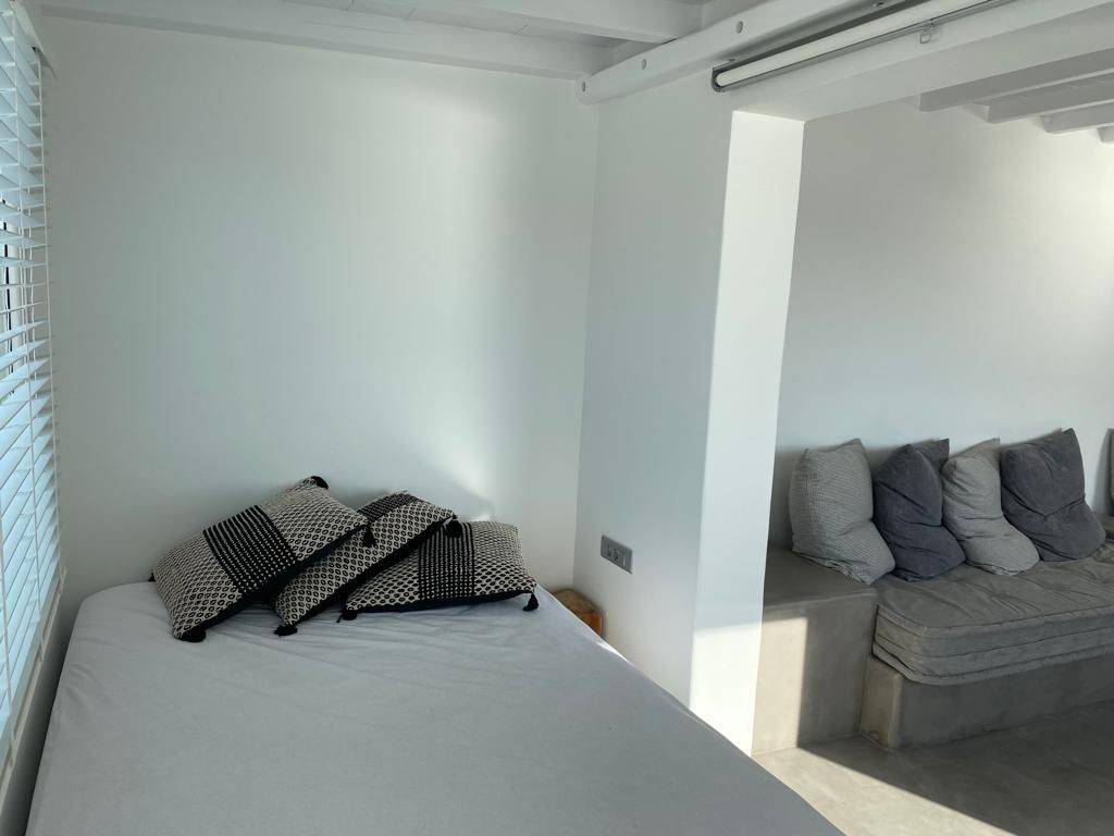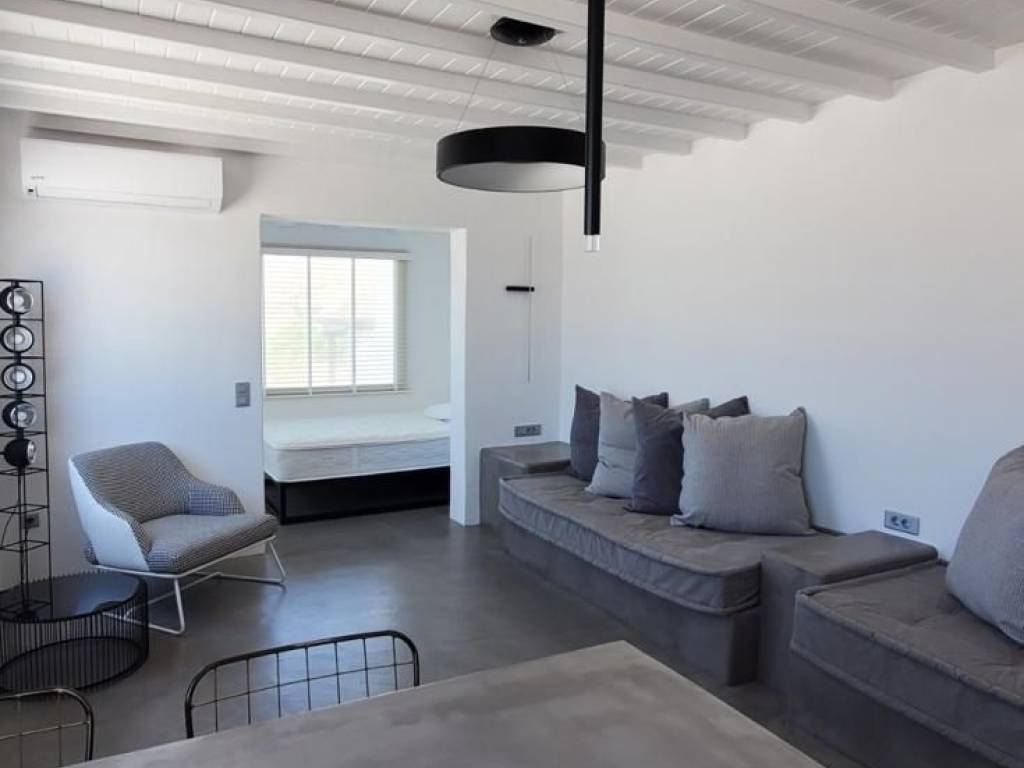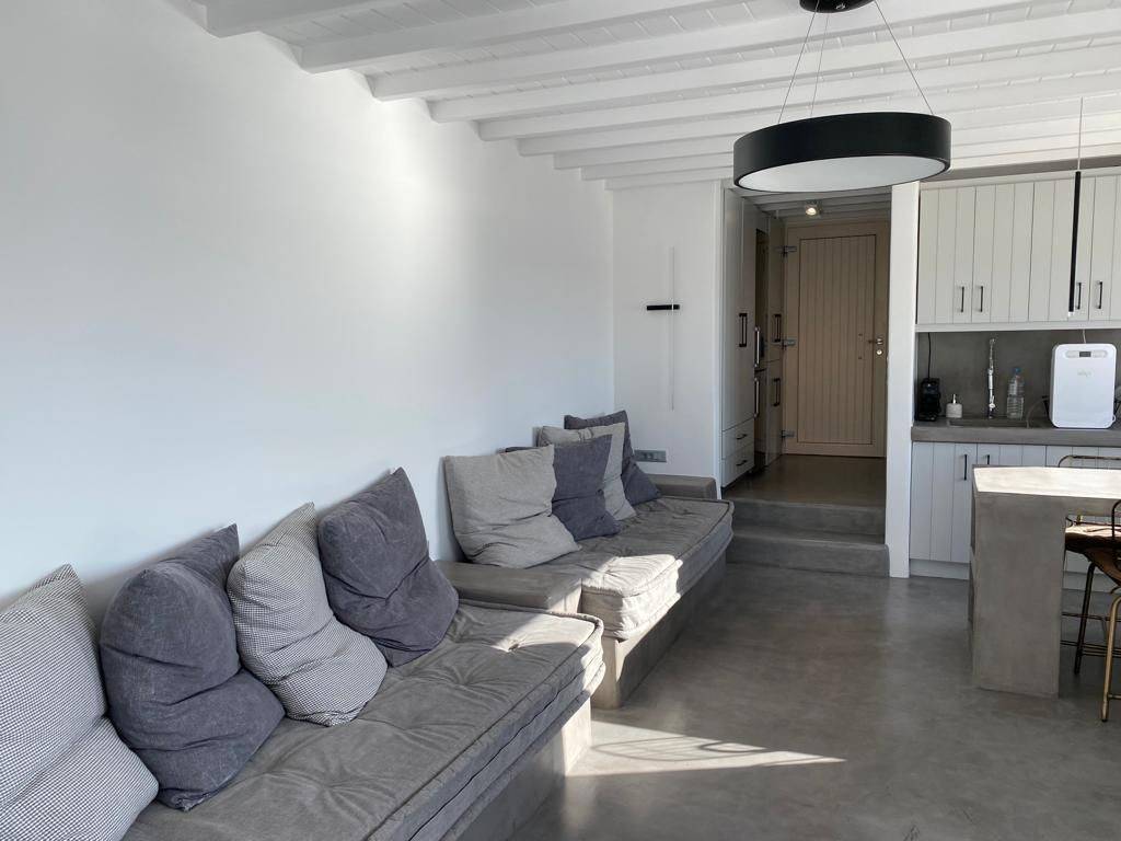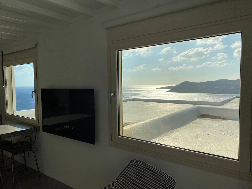 A great & rare investment opportunity in Mykonos ! A one of a kind Sea View One bedroom apartment located on the hilltop right above Elia beach , South East Mykonos . It is part of a residential complex with a unique location , just 300 m up the hill from Elia beach , one of the very most sought after areas on the island . The apartment consists of an open space kitchen - dinning room - living area , 1 bedroom with panoramic window and magnificent sea view and a full bathroom . The apartment also features an outside veranda with a breathtaking view on the bay of Elia . The apartment operates as a bnb rental unit , offering its pottential investors an annual gross rental yield of 10% . A one of a kind investment opportunity , not to be missed !
