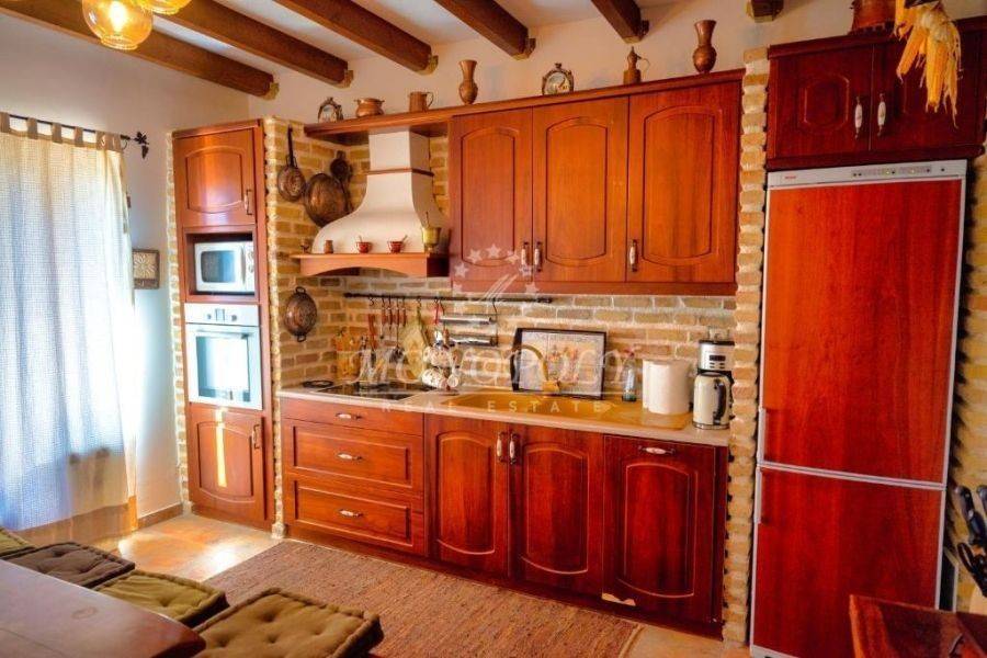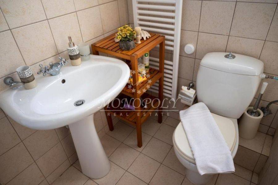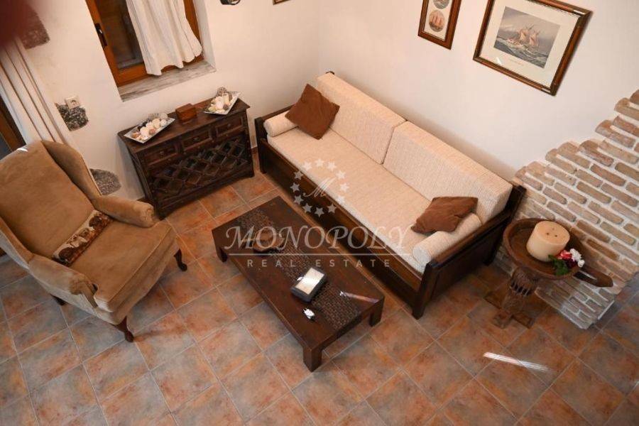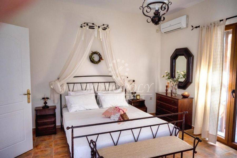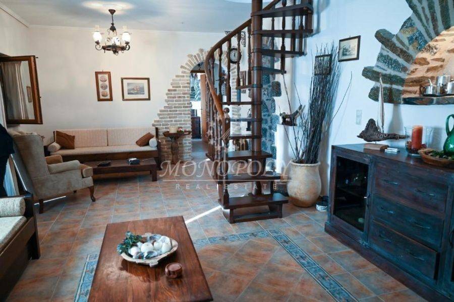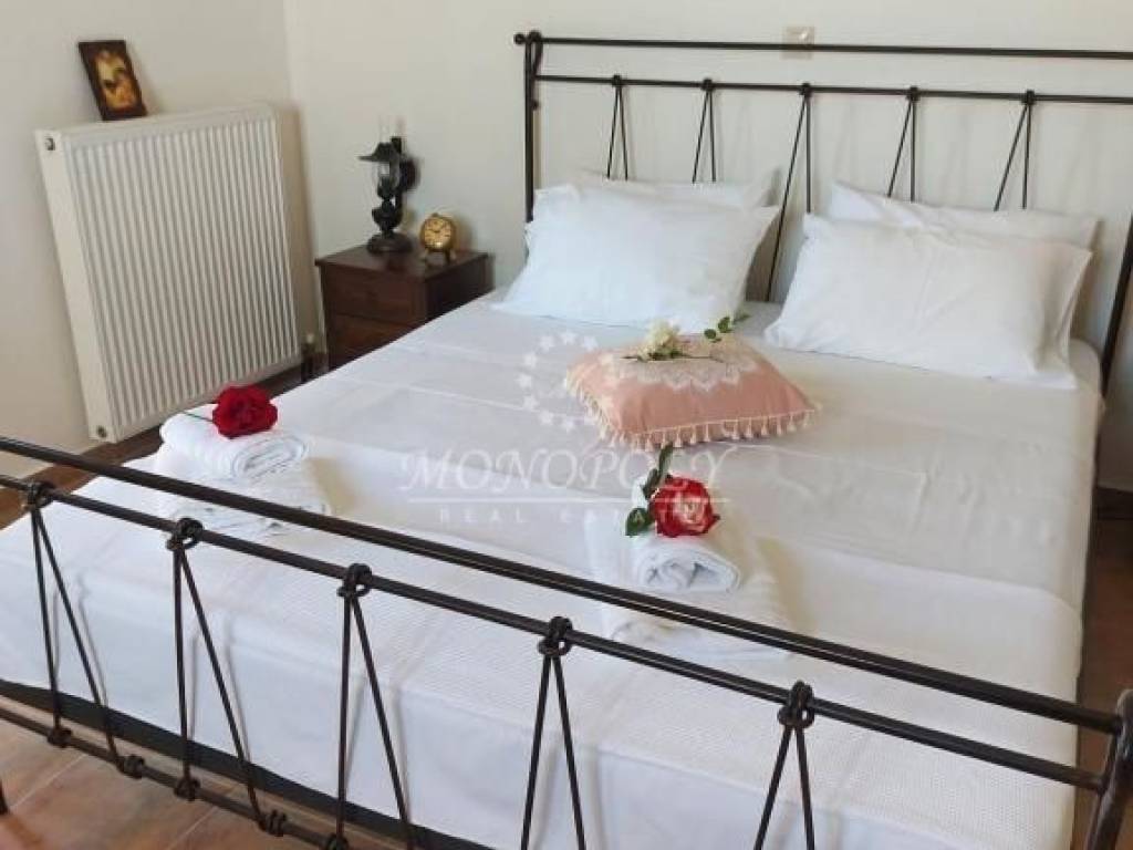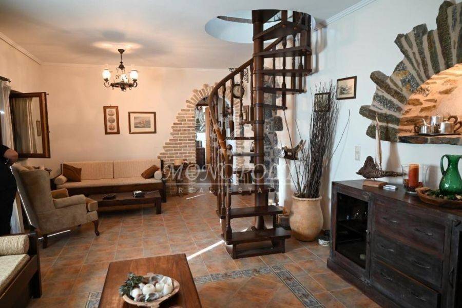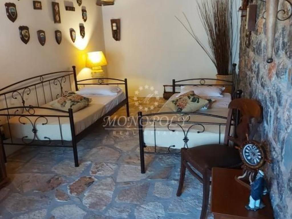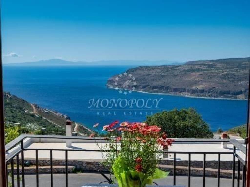 Oitylo - Aeropoli, 3-level independent maisonette 180 sq.m., built in 2006, stonemade, with great sea view! On the 1st floor there is a living room with a fireplace, sitting hall, large kitchen with dining room, a patio for use as an office or a bedroom and large terraces with sea view. On the 2nd floor are 2 large bedrooms with 1 bathroom. On the ground floor is an independent guesthouse apartment with a living room and kitchen, with 1 bedroom, 1 bathroom, the storage room and the boiler room. It has independent petrol heating, solar boiler, internal and external stairs, security door, courtyard, garden with flowers and 2 parking spaces. In a very nice spot, near the beach, Aeropolis and Oitylos.