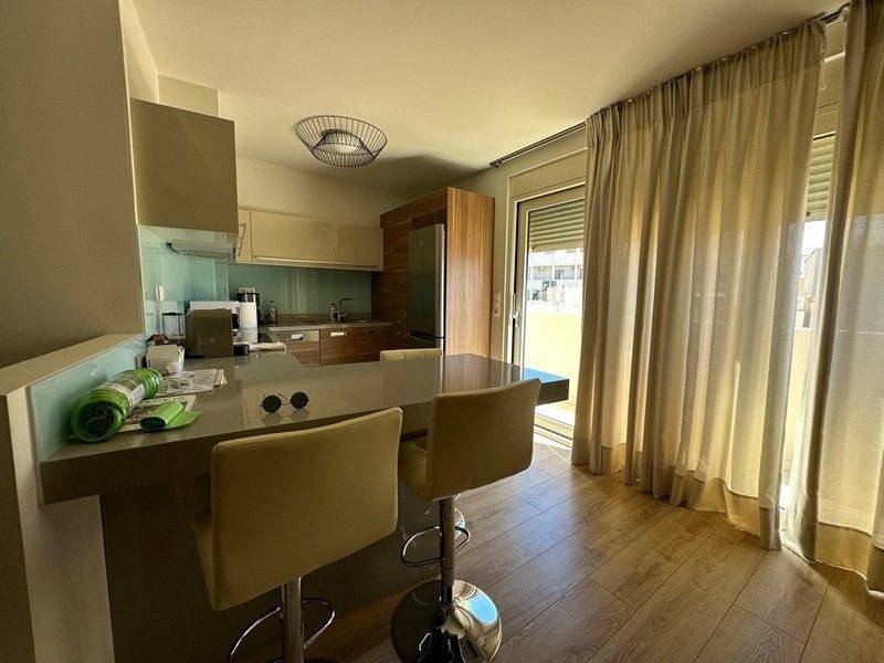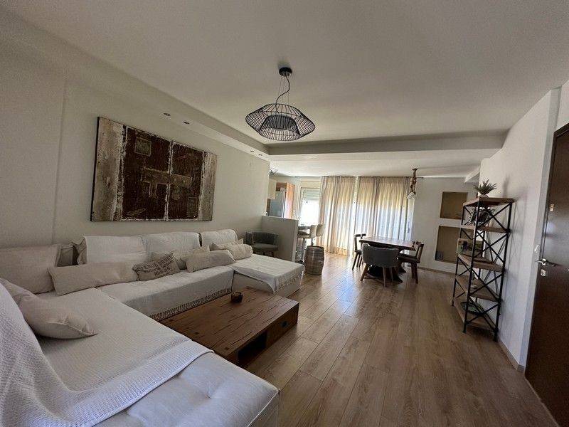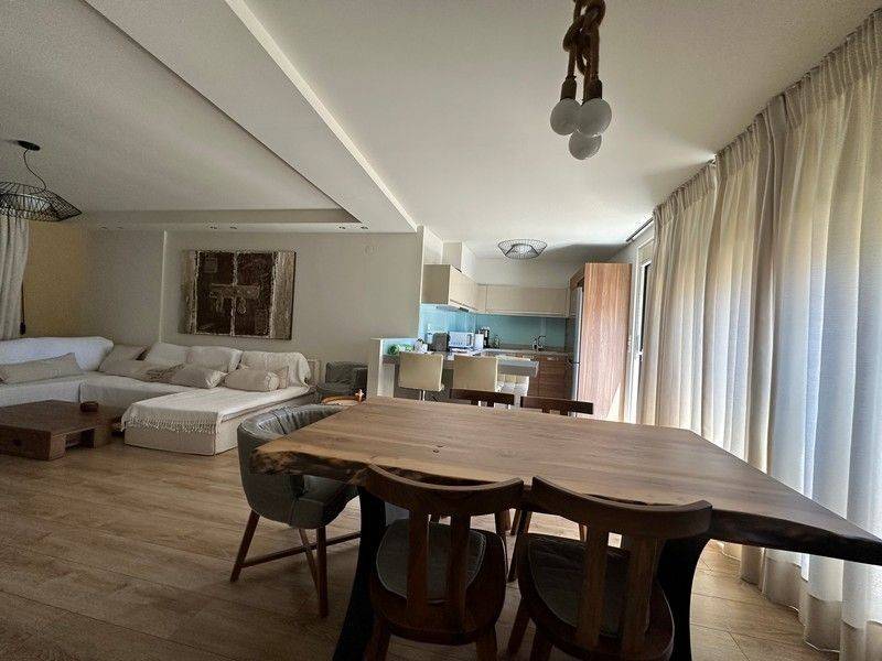 In the center for sale is a luxurious newly built three-room maisonette, 3rd & 4th floor, 139 sq m on two levels, with license dates in 2014 and completion in 2022, fully furnished and electrically equipped, frontage, airy. It has a kitchen, living room / dining room, two bathrooms, two bedrooms with large built-in wardrobes, air conditioners, solar water heater, storage room and parking space. Also suitable for tourist exploitation (airbnb).