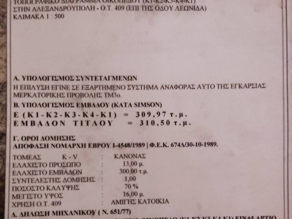 ΑΛΕΞΑΝΔΡΟΥΠΟΛΗ Oικόπεδο 310 τ.μ., εντός σχεδίου, αμφιθεατρικό, συντελεστής δόμησης 1. 13, 1 όψης, πρόσοψη 13 μ., άρτιο, οικοδομήσιμο, διαμπερές, ελεύθερο, διαμπερές με 13 x 25 πρόσοψη, τετραγωνισμένο με 1 συντελεστή δόμησης και 16 μέτρα ύψος (4 ορόφους) σε αντίθεση με τα υπόλοιπα οικόπεδα της περιοχής που χτίζουν μέχρι δυο ορόφους και έχουν μικρότερο συντελεστή δόμησης. Κοντά στο νέο κολυμβητήριο ,νεο κλειστο γυμναστήριο και στο Πάρκο Αλτιναλμάζη. Ανοιχτό σε τρεις πλευρές. Περιφραγμένο με θέα και έτοιμη παρoχή νερού.