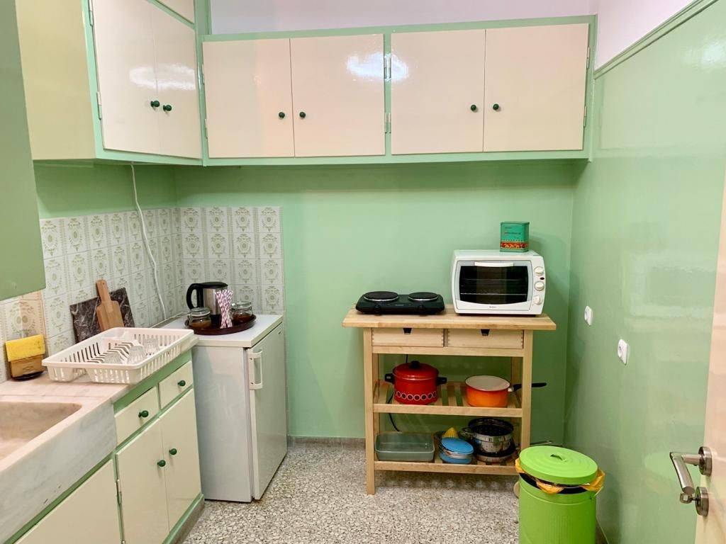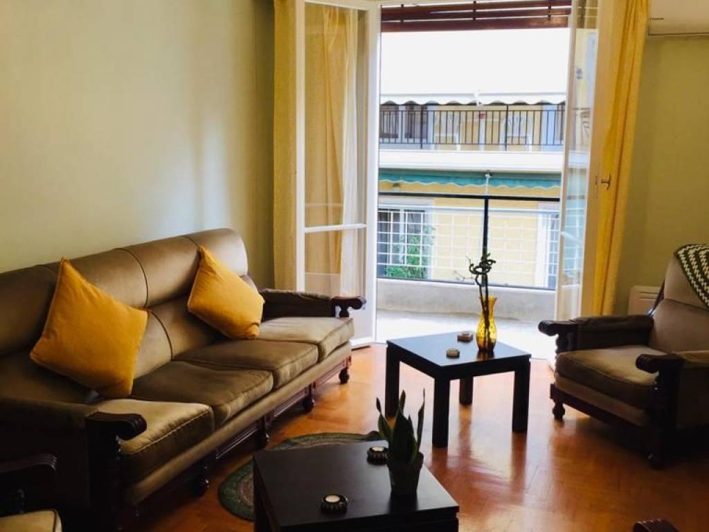 Furnished apartment for rent in Agias Zoni, Athens 75sqm on the 4th floor. It has two bedrooms, two balconies, living room, kitchen and bathroom. It has new air conditioning units and electrical appliances (tv, washing machine, microwave oven and oven). It includes a Security system (alarm) and a security door. The apartment is located on a small pedestrian street and in 2 minutes walk you are in Patision. The building has an elevator.