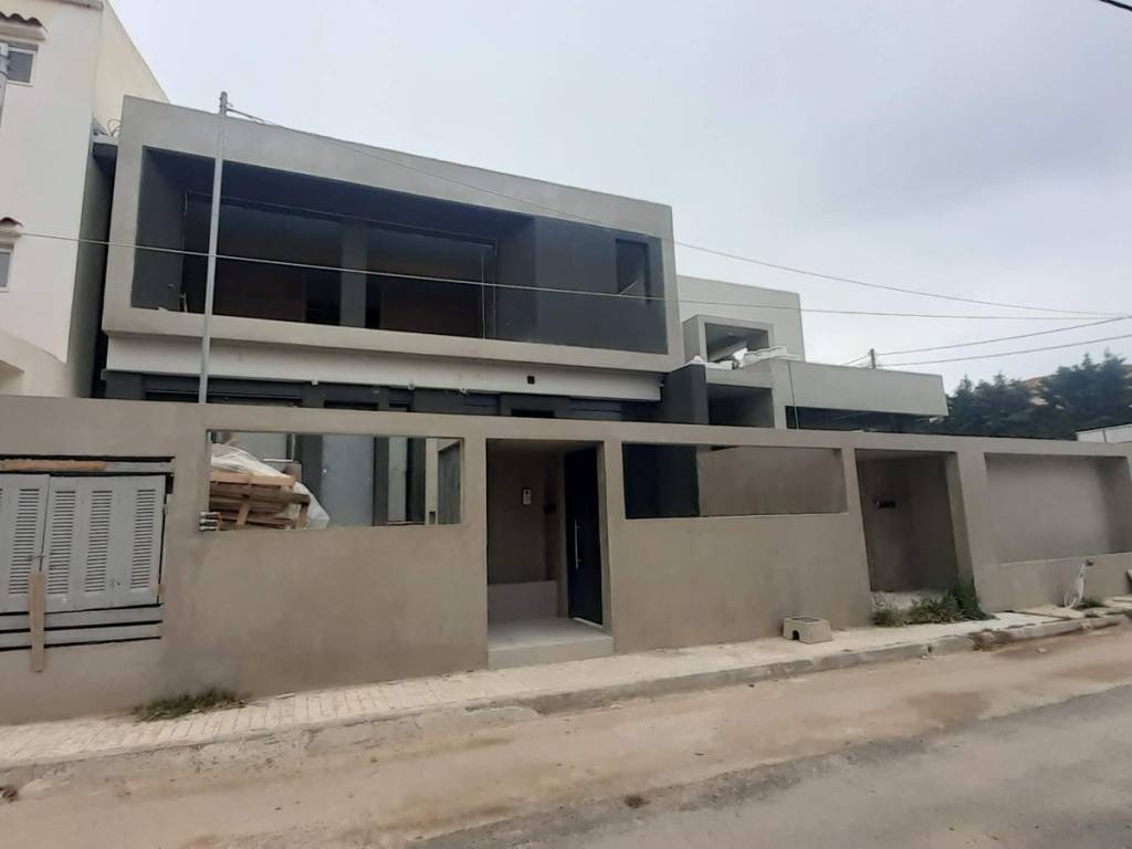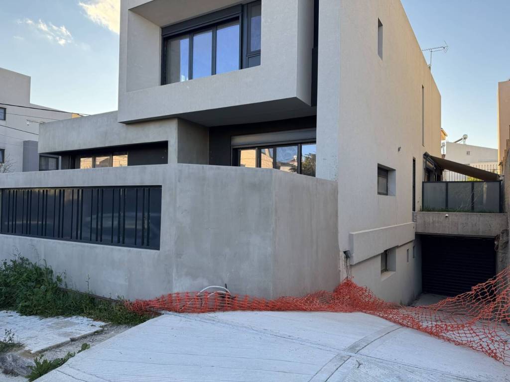 The corner maisonette, modern minimal design, is under construction. It is developed on two levels, Ground floor and First floor, airy and independent. It has an exclusive basement area with gym, bathroom, three parking spaces and storage rooms. On the ground floor it includes a living room, patio, kitchen, bathroom and on the first floor patio, three bedrooms, a master, office, laundry and bathroom. Construction ’22, autonomous heating with heat pump, air conditioning, security door, solar, active. Ok. A+, heat-switched aluminum frames with screens and double glazing, granite and wood floors, armored door, built-in wardrobes, alarm, solar water heater, night electricity. With independent entrance and exclusive use of garden with swimming pool. The building has a modern architectural design and follows the principles of bioclimatization. Located on a quiet street close to schools and future Gerakas metro/suburban stop, close to ring road. In the current situation, 6/5/2023, the thermal facades are completed. Without the construction of the pool the price changes. Estatepro.gr property code: 20271 or https://bit.ly/42c1wD1