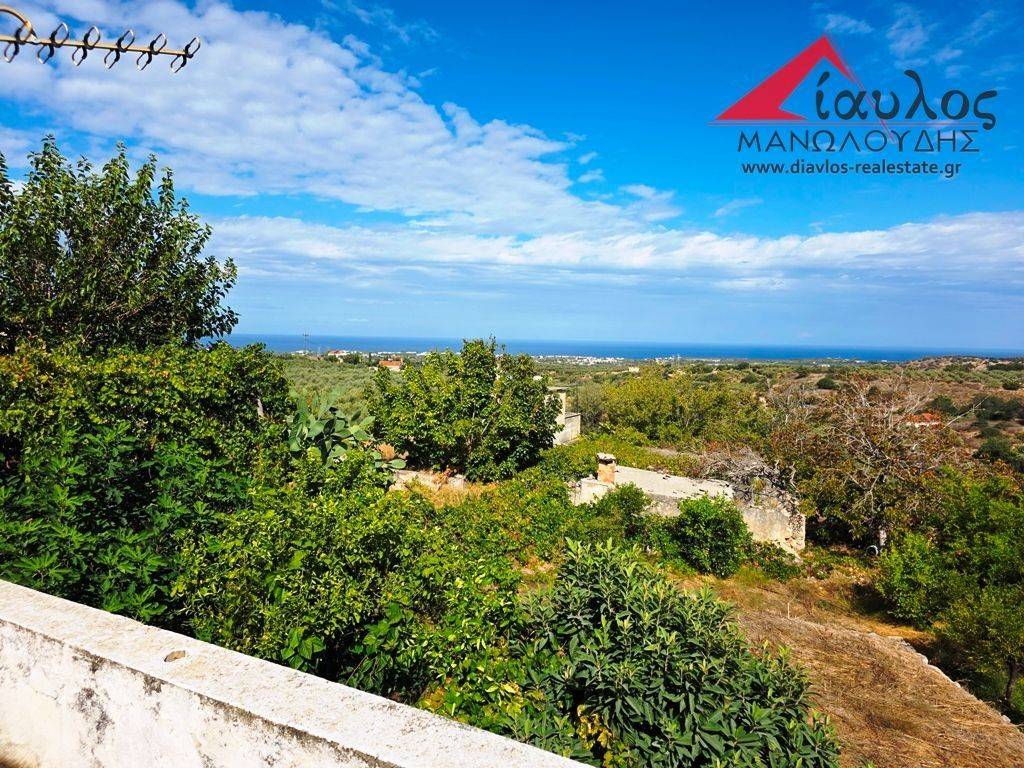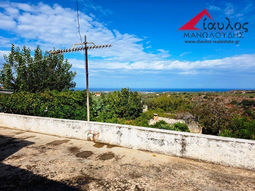 For sale beautiful, two-story, stone-built detached house with a large garden, terraces and unobstructed sea view in a village of the former Municipality of Arkadi Rethymnon, Crete island, 10 minutes from the beaches. It is a really beautiful house with a large surrounding area (courtyard - garden) as well as terraces to the north and south. In particular, this two-story building has a total area of 180 sq.m. approximately and is built on a plot of land of 555 sq.m. The ground floor is auxiliary and storage spaces (old warehouses, cellar, wine press, stable) while the first floor is the main living space with three large rooms and bathrooms. The large veranda to the north and the covered veranda to the south of the house give us a unique unobstructed view of the sea and the surrounding area, while the courtyard with the old wood-burning oven testifies to the building's antiquity and its characterization as a traditional Cretan house. Finally, a big advantage is the garden of the house with fruit trees which can be utilized both by growing horticulture, flowers or fruit and by installing a swimming pool. Real Estate Diavlos Tel. +30 28340 22011 Mob. + 306942667180 (Viber and Whatsapp available)