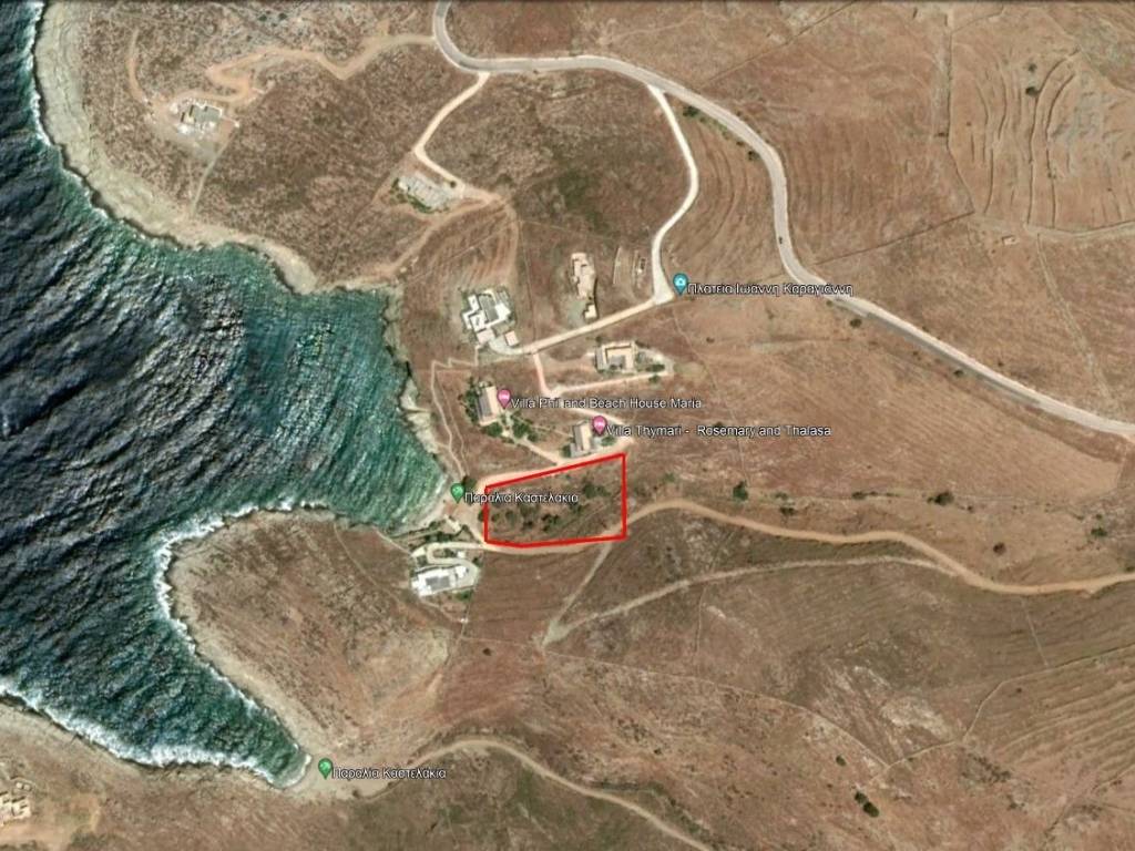 Με πρόσοψη σε αμμώδη παραλία, άρτιο και οικοδομήσιμο αγροτεμάχιο 4.100τμ, εύκολα προσβάσιμο από τον επαρχιακό δρόμο, με ανοιχτή θέα προς τη δύση.