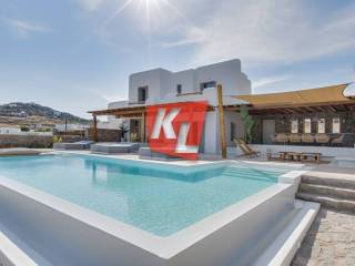 MYKONOS KALAFATIS VILLA OASIS a totally independent villa of 185 m2 size and consists of 5 bedrooms with private bathrooms, separate guest WC on the ground floor and a lower-ground guest studio with private WC.