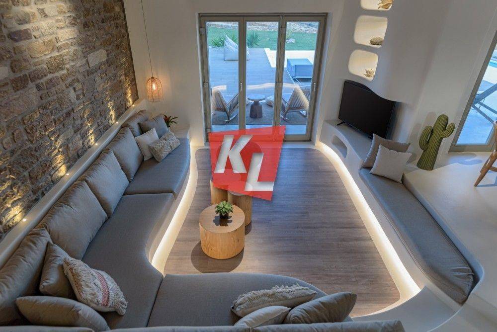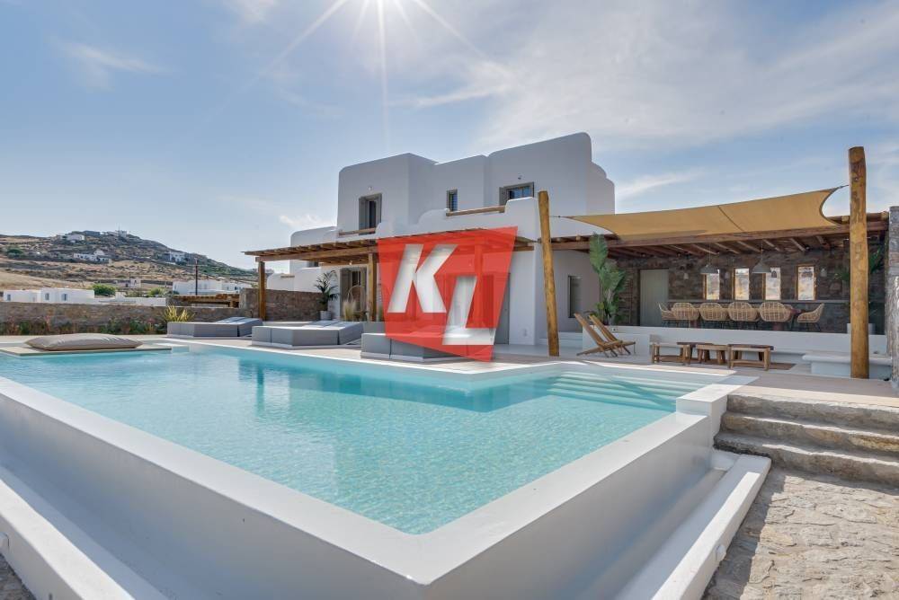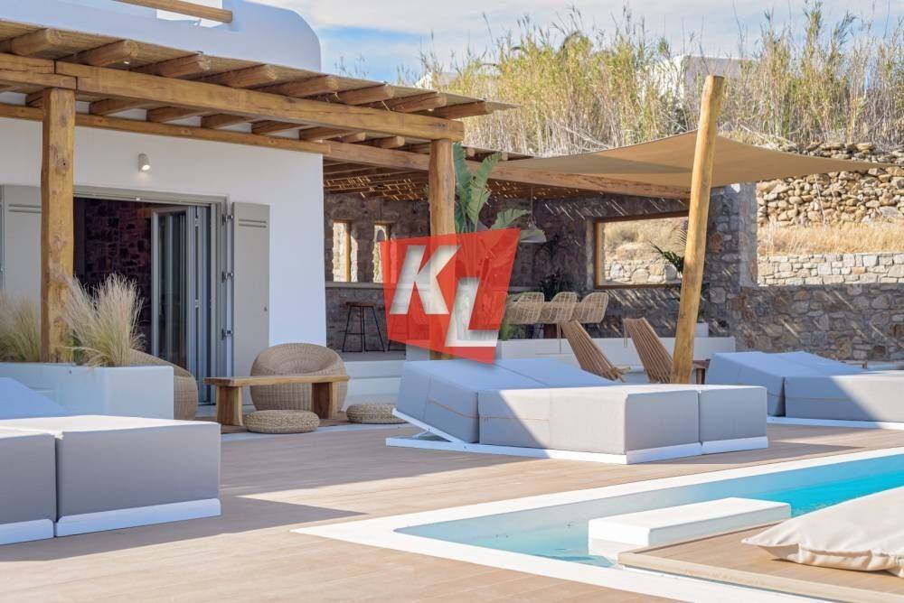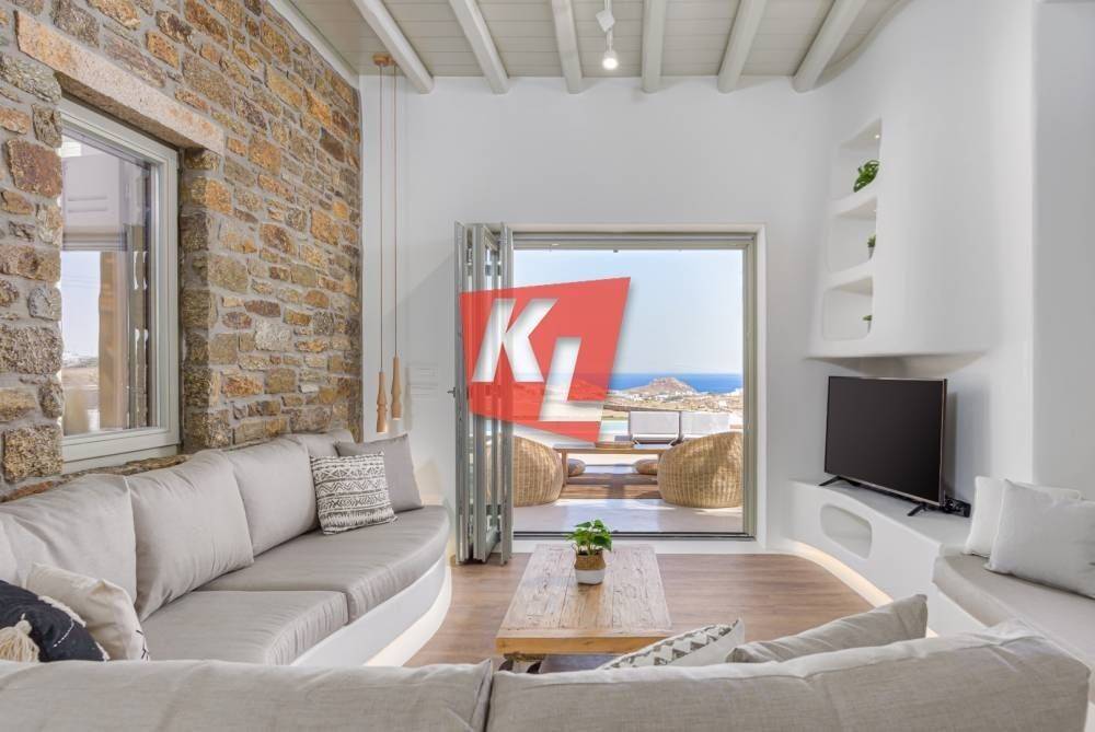 MYKONOS KALAFATIS VILLA OASIS a totally independent villa of 185 m2 size and consists of 5 bedrooms with private bathrooms, separate guest WC on the ground floor and a lower-ground guest studio with private WC.