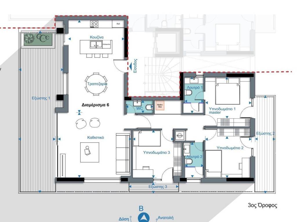 Alimos, Pani, Newly built apartment of 129 sqm on the 3rd floor on Lofos Pani with an amazing view of the sea, it consists of a single living room-kitchen-dining room with WC, which opens onto a large terrace with an unobstructed view of the sea. It has 3 bedrooms (1 master with en suite bathroom) and another 2 bedrooms and 1 bathroom, independent underfloor heating with heat pump, VRV air conditioning, photovoltaic, energy efficient aluminum frames, double glazing, screens, fire doors, alarm and fire detection system, video door entry, large verandas, basement storage 9 sq.m., 2 garage spaces with socket for electric car charging. It is located in a quiet street with very easy access to the beach. Photorealistic images and photos. Delivery within the summer of 2023, property manager Zoe Galanopoulos mob: +30 6988610272, price 920.000€, code 6130 , TAF REAL ESTATE AND DEVELOPMENT, Mob.: +30 6976113579, www.tafrealestate.gr