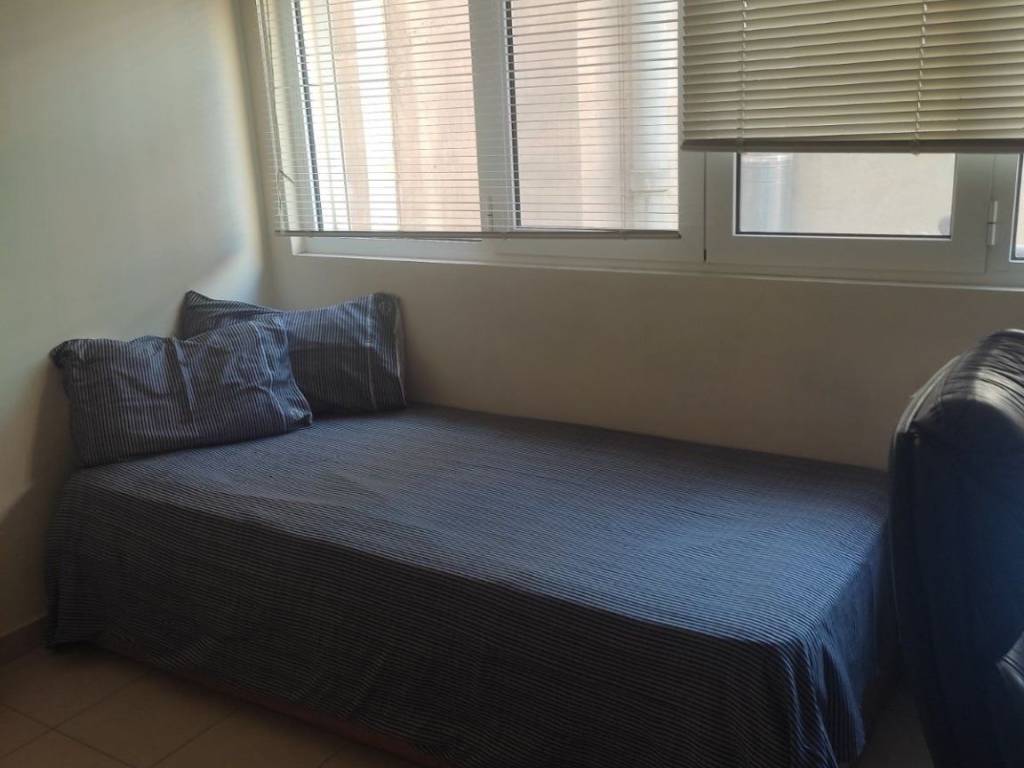 Airy apartment, 1 double bed, 1 single bed with another one coming out from underneath, fridge, washing machine, dishwasher, leather sofa, library, desk.