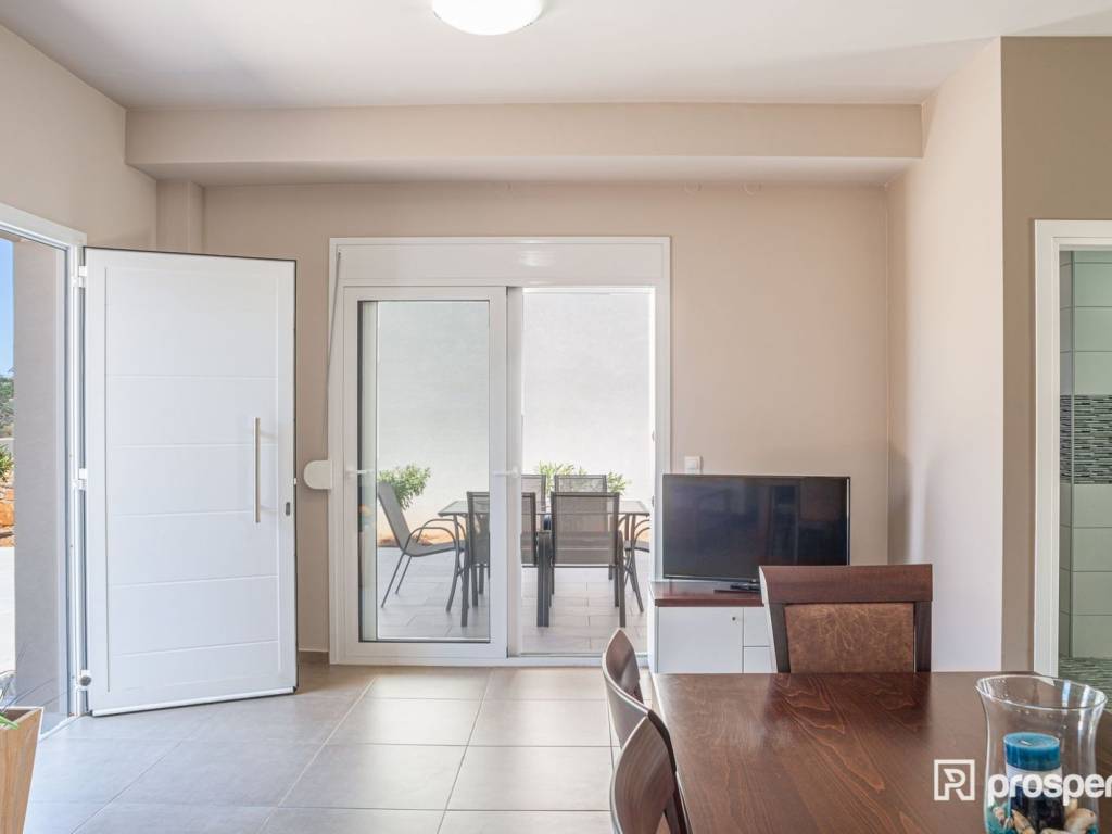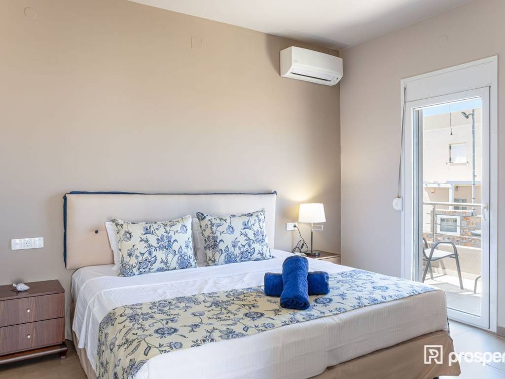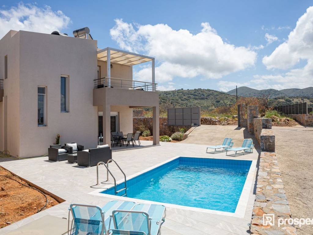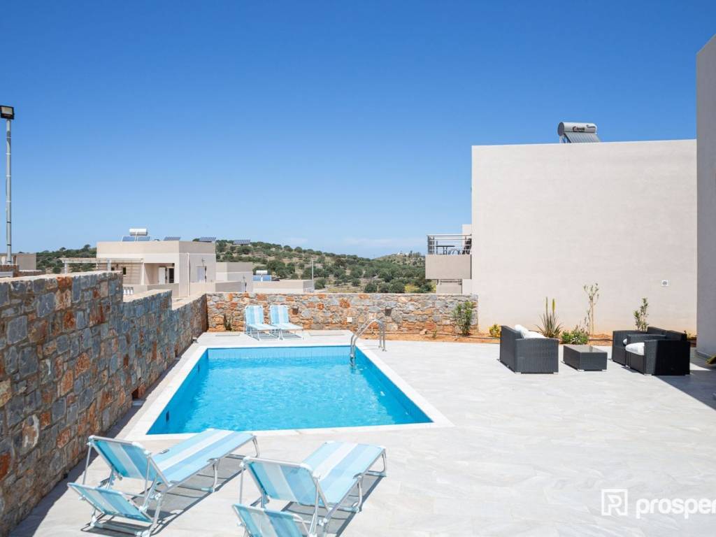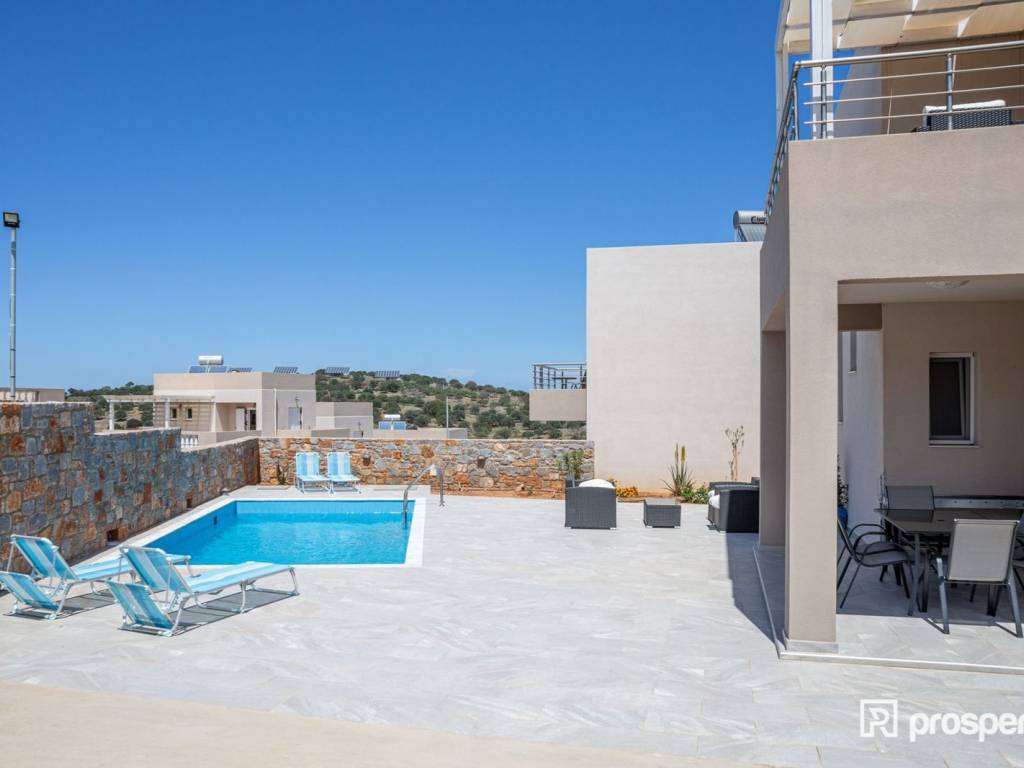 This imposingly beautiful villa, in Agios Nikolaos of Crete, must be yours! A space of 120 sq.m., which you can utilize either for personal use or for investment purposes, with 2 bedrooms, kitchen, 2 bathrooms, 1 toilet, living room with dining room of 22 sq.m. and air conditioning, is the property of your dreams. With an airy interior framed by the beige palette and exuding the warmth of coffee, the ultimate place is created, suitable for rest and family relaxation. However, it is not only the interior of the residence that fascinates you, but also the exterior, which has the privilege of having as a background a combination of greenery, sea and city. On bright, summer days you can relax or swim in the pool which is larger than 20 sq.m., read your book in the living room or have lunch with relatives and friends in the dining room that you will find when you open the front door of the house. If you are a restless spirit, you can also explore the wider area, where you will find a square and a park nearby, while you can swim in the sea nearby. Choose the virtual tour, discover the villa and schedule to see it, through the "request viewing". https://marketplace.theprosperty.com/listings/725 ☎️ 210 6812500