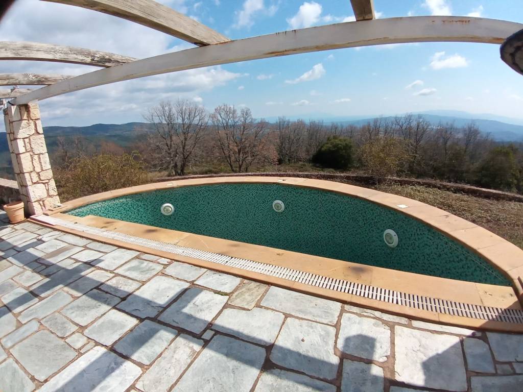 For nature lovers. For Someone who is looking for the ultimate escape in the natural environment without depriving himself of the conveniences of a comfortable residence, for sale is an excellent, luxurious, 2-storey, traditional-style stone villa of 271 m2 on a plot of 4,555 m2, with a large swimming pool and tennis court. With a huge terrace and a view of Toroneos gulf. It is located in a Natura area forest, in a beautiful natural landscape, about 5 km. above the town of Polygyros at an altitude of about 750 m. Built in 2010, the load-bearing body of the building is made of reinforced concrete and the masonry is made of obvious jointed stonework, the floors are made of Karystos slate, the bathrooms have a coating of ceramic tiles, the frames are German-style solid wood and there are a total of 4 fireplaces inside the building, the property does not have a connection to electricity providers (there are photovoltaic panels) or water supply, for domestic needs water is used from rainwater collection tank. The surrounding area has a fence with retaining walls made of stonework while the levels are paved with traditional type slabs. In details: The ground floor 99.83 sq m includes the living room, two bedrooms, kitchen and storage space the first floor is 53.08 sq m 1 bedroom and an office space the basement 152.92 sq m a playroom, gym, sauna and storage space. Parking space 67.14 sq.mThere is also a stone building of about 12 square meters for the production of electricity from photovoltaic elements. Also drainage facility and water tank. Distance from the nearest organized tourist beach about 18 km. Distance from the SKG airport 57.5 kilometers. Access is from a rural road. The property is also suitable for tourist use. Suitable for obtaining a golden visa by residents of third countries for a residence permit in the European Union www.empire.com.gr