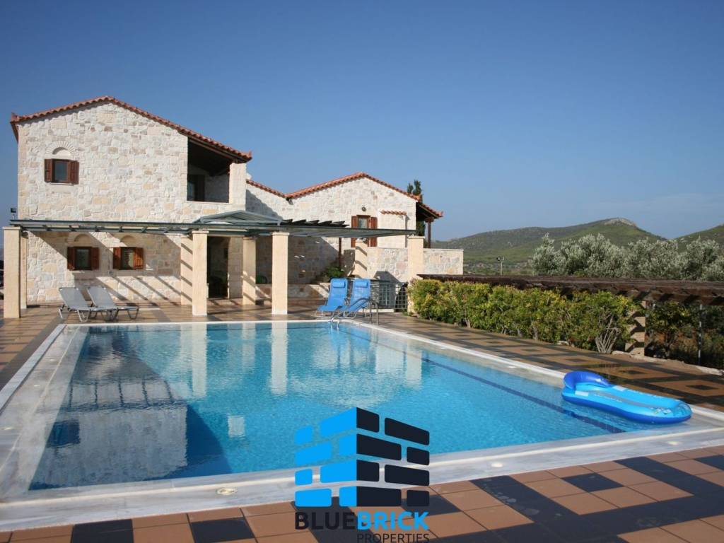 Villa For sale in Keratea - Sinterina. The Villa is 600 sq.m. and it is located on a plot of 20.000 sq.m.. It consists of: with Double glazed windows, the energy certificate is: C and its floors are Tiles, Swimming pool, Security door. Price: €2.700.000. BlueBrick Properties, contact phone: 2102208392, email: info@bluebrick.gr, website: https://bluebrick.gr