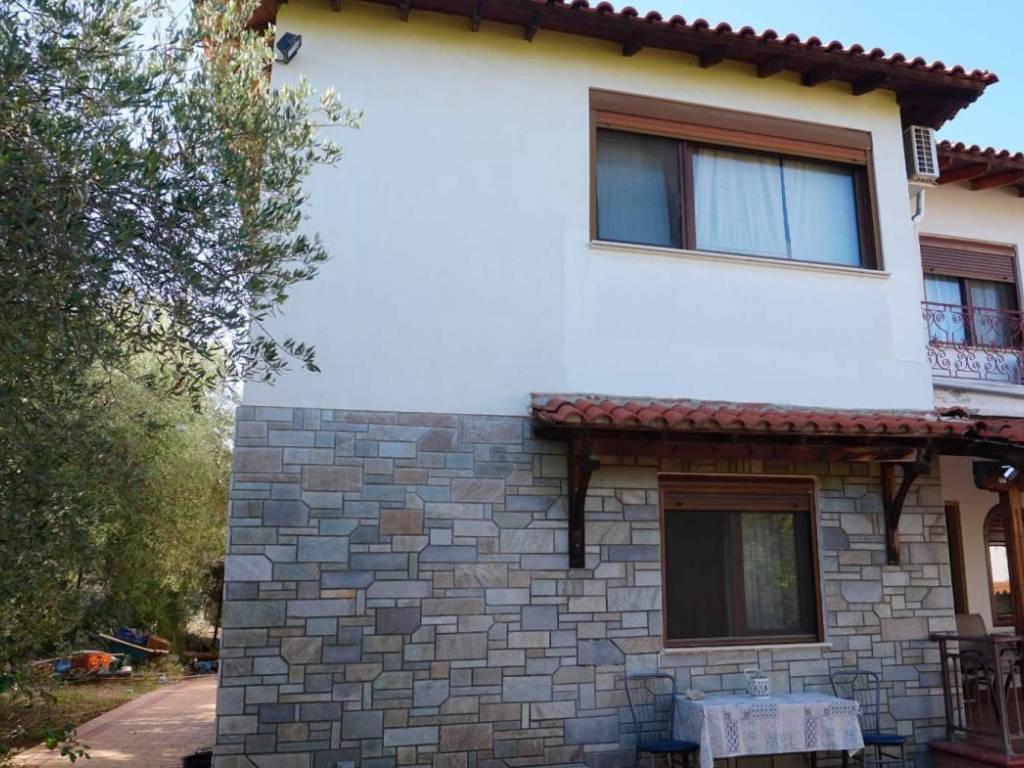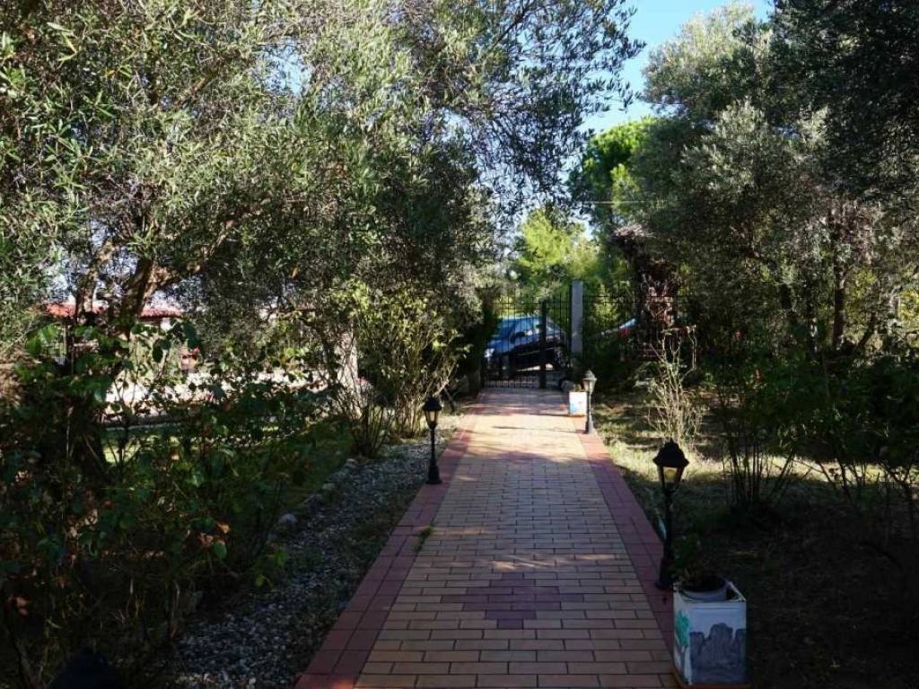 For sale unique detached house with a total surface of 180 sq.m. with 1300 sq.m. garden outside of Nea Moudania, Halkidiki. It is located in a quiet and privileged spot about 400 meters from the sea. It has 3 bedrooms, living room, kitchen, 2 bathrooms and wc, more information upon contact