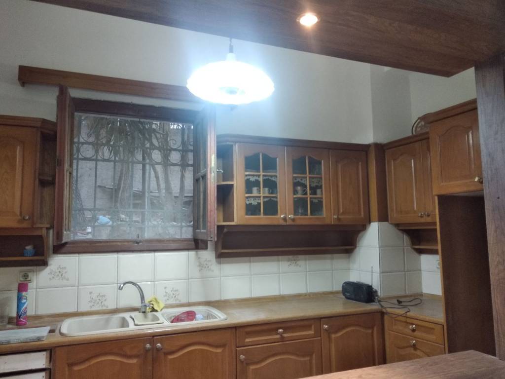 Rental residence KERATSINI -Εvgenia, good condition, elevated ground floor apartment 128 sq.m., bright, 3 bedrooms (2 master), built in 1994, 2 bathrooms, heating: autonomous heating with individual installation(air conditioners) , security door, unlimited view, open parking, warehouse-2 lofts, private roof, garden, aluminum frames, screens, night current, no elevator, residential zone, renovation ***/*******,floors: tile, laminate, 2 bathrooms, 2 kitchens, living-dining room, (there is night current), shared large garden with trees and garage space 48 sq.m., 2 balconies in front ( one large and one smaller) and backyard with garden, large balcony doors - aluminum windows with screens, built-in wardrobe in the hallway. The apartment consists of two apartments with separate entrances (a three-room apartment and a studio apartment), located in a quiet neighborhood, close to a primary school - kindergarten and public transportation. Very low utilities, price €700, contact hours: 21:00-22:00