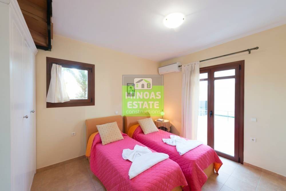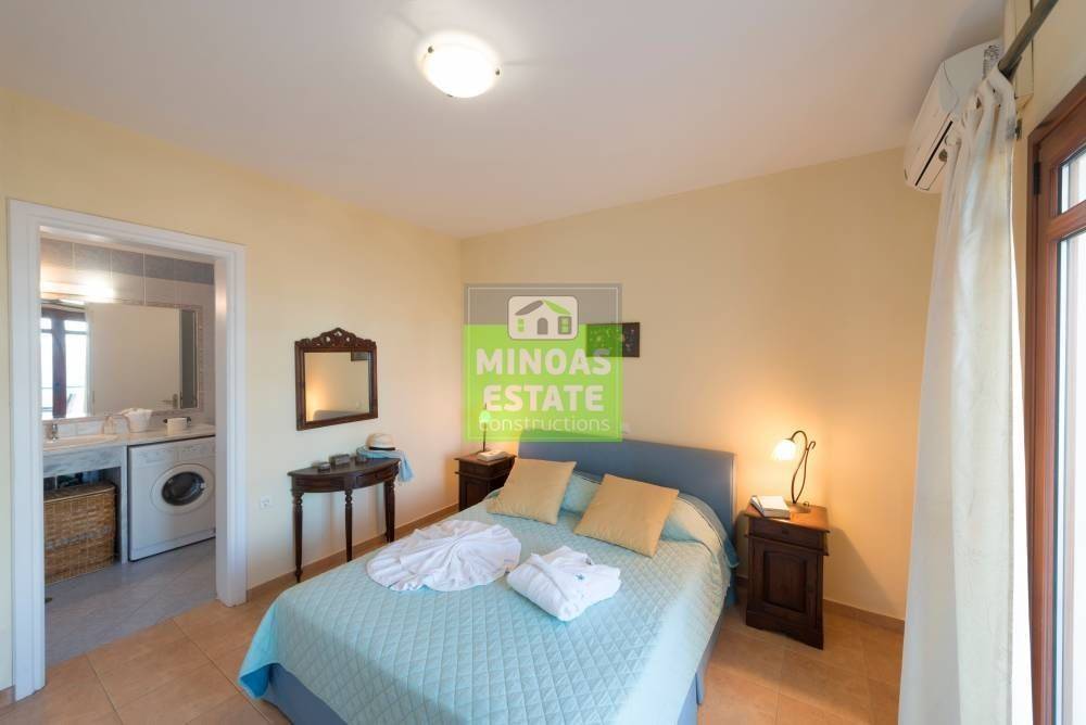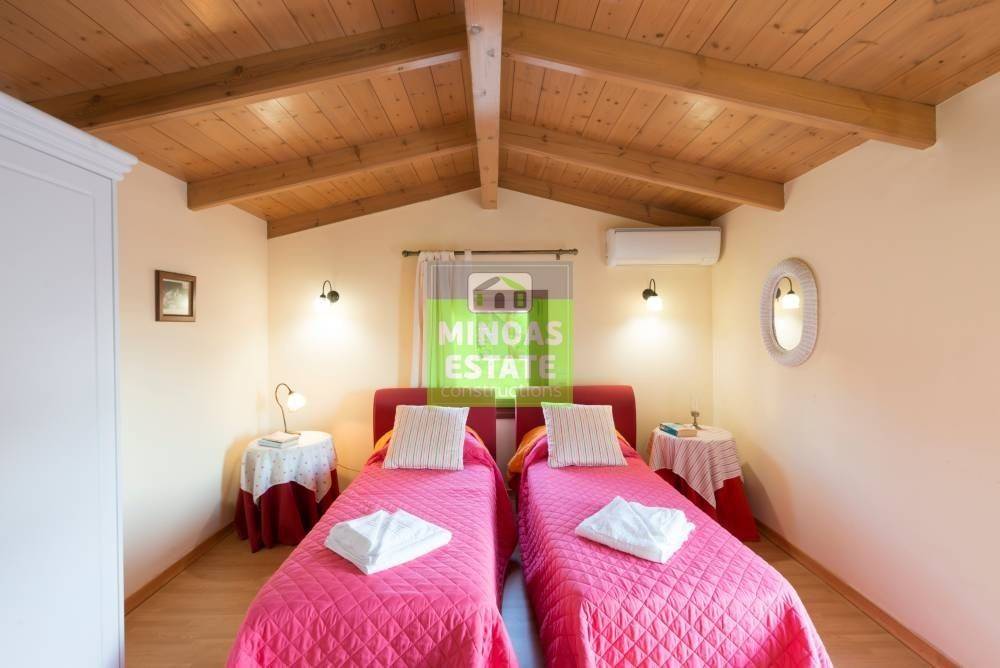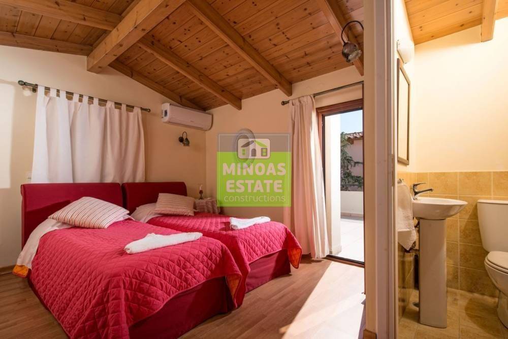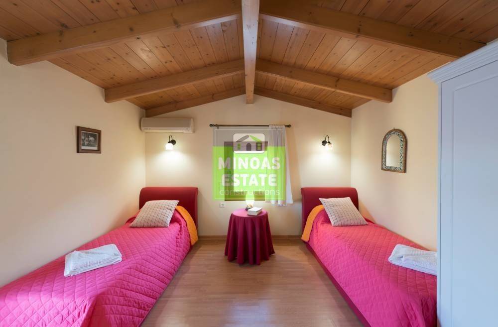 Vamos, Plaka: For sale complex with 4 Villas, total 600 sq.m. luxury, on the ground floor of 3 levels with individual electricity heating. It consists of 12 bedrooms of which 4 are master, 4 kitchens, 4 living rooms, 8 bathrooms and 4 WC. They are furnished, with electrical appliances, built in 2020, painted and have sea views, swimming pools (Each has its own pool, aluminum frames with double glazing, security doors, 8 outside (covered) parking spaces, air conditioning, tiled floors , fireplace, cable TV, solar water heater. Each property has the following layout: LIVING ROOM-DINING ROOM-WC1 BEDROOM-BATHROOM The property is recommended as an investment but also as a permanent residence pets. Located in the beautiful village of Plaka, very close to the sea! Price: €3.000.000 | Property Code: #M-14851