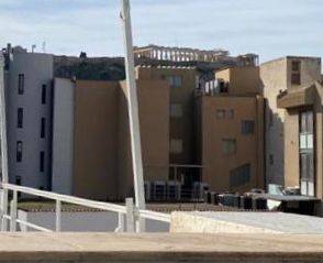 showroom/office space 40 sq m . it consists of two rooms both with windows. (in the main one there is a/c unit, water facility and a sink) big shared verandah of 60 sq m with view to the parthenon. shared wc on the floor. two lifts. coffee shop at the ground floor which delivers.