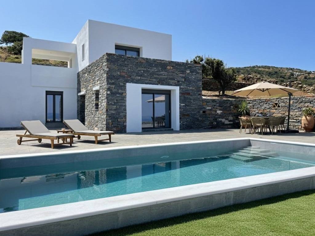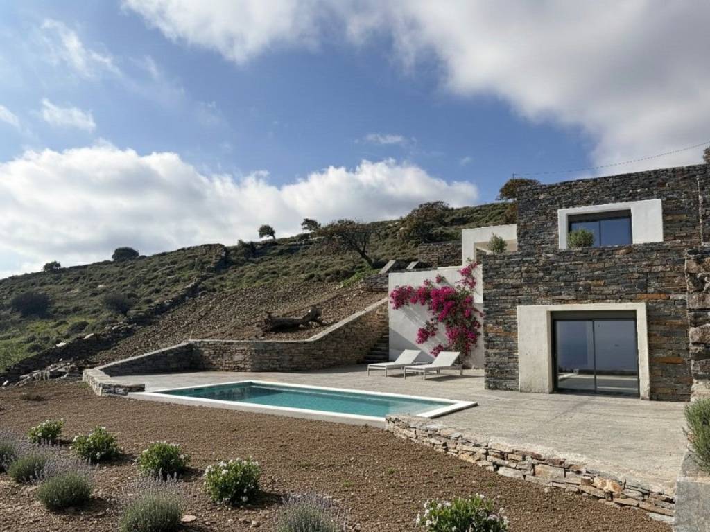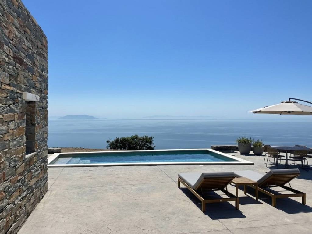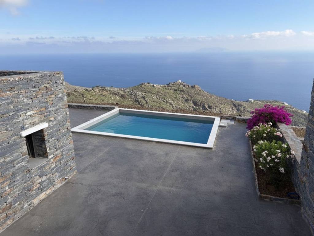 GRIKOS II Residence On the island of Kea (Tzia) in Cyclades, in the area of Grikos (Velado), near the beaches of Orkos and Psathi, three independent residences of 122 sq.m. each are available for sale. The houses are almost ready for moving in. Each maisonette is developed over two levels and consists of an open-plan kitchen and living area, two bedrooms, two bathrooms, a 30 sq.m. storage room, a private plot of at least 950 sq.m., five parking spaces, and an exclusive-use swimming pool. The high construction standards of the complex are based on the traditional architecture and culture of Kea, offering visitors a unique experience of comfort and luxury during their stay. The panoramic location of the residences provides unobstructed views of the endless blue of the Aegean Sea and at least eight islands of the Cyclades (Andros, Tinos, Syros, Kythnos, Mykonos, Naxos, Paros, Gyaros, and Serifos). These properties are available for sale fully completed. The area of Grikos (Velado) is located on the southeastern part of Kea, approximately 13 kilometers (25 minutes) from the island’s port, Korissia, and just 4.5 kilometers (7 minutes) from the island’s capital, Ioulida. The road leading to the residences is fully paved, offering excellent and easy road access. In the greater Grikos area, scattered residences harmoniously blend with the natural landscape, while the local vegetation consists of low shrubs and tall oak trees. Our company celebrates 33 years of presence in the field of construction, with our extensive experience guaranteeing a high level of professionalism and quality in every project we undertake.
