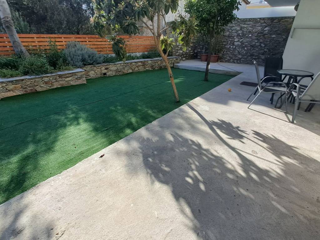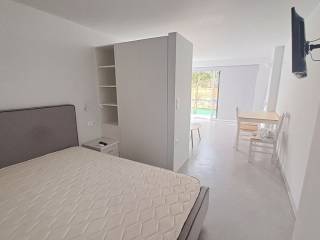 Newly built ground floor studio, 37 sq.m. Open-plan living area that is separated from the bedroom-kitchen area by a wardrobe divider. Includes a bathroom, a veranda, and access to a shared garden. Fully furnished and equipped with electrical appliances.