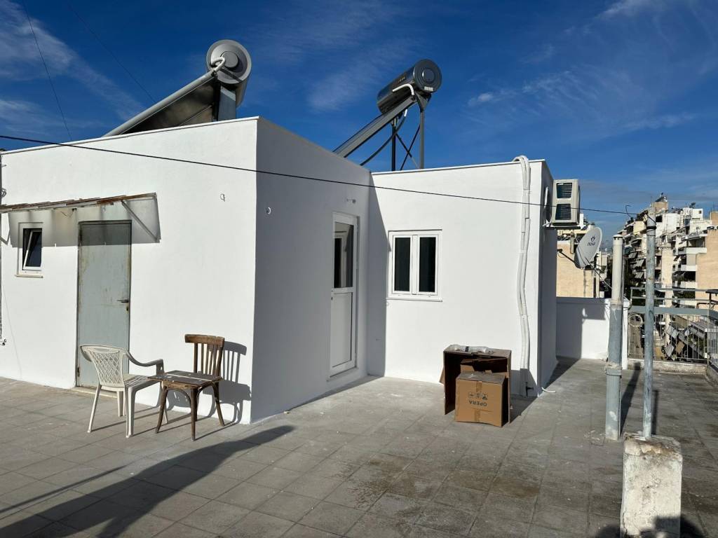 Studio 22τ.μ. ενός υπνοδωματίου στο Δώμα πολυκατοικίας, Ιδανικό για φοιτητές. €400/μήνα - ΧΩΡΙΣ ΜΕΣΙΤΙΚΗ ΑΜΟΙΒΗ. Συμπεριλαμβάνει κλιματισμό, ψυγείο, φούρνο μικροκυμάτων. Το κτίριο δεν έχει ασανσέρ, το δώμα είναι στον 4ο όροφο. Έχει απευθείας πρόσβαση στην κοινόχρηστη ταράτσα του κτιρίου με απροσκοπτη θέα στην πόλη και απομακρυσμένη θέα της Ακρόπολης. Συνοδεύεται από αποκλειστική χρήση δωματίου/αποθήκης στον ίδιο όροφο ακριβώς απέναντι από την είσοδο του διαμερίσματος, το οποίο είναι ιδανικό για χώρο πλυντηρίου ρούχων ή/και αποθήκη.