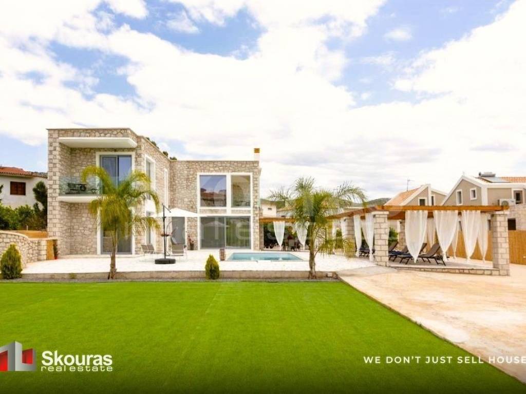 In the area of Drepano and just 900m. from the nearby beaches, an independent, luxurious detached house with a total area of 170 m2, on its own plot of 2,251 m2, is available for sale. It is an architecturally beautifully designed residence, which consists of two levels, with large comfortable indoor and outdoor spaces. On the first level, which is on the ground floor, we find a comfortable living room with a fireplace, a semi-separate kitchen, a w.c. and a master bedroom overlooking the pool. The second level (first floor) consists of three master bedrooms, each with its own bathroom. The bedrooms are spacious, bright and offer comfortable spaces for relaxation, with beautiful openings from the balconies and unobstructed views. One of the main features of this residence is the property`s beautiful swimming pool. Large in size and well designed, the pool offers opportunities to relax and enjoy the sunny outdoor space. The location of this stone detached house is excellent, with easy access to nearby amenities and services as it is only 100m. from the center of Drepano. At the same time, it offers an alternative life in nature, with green landscapes and amazing views. The surrounding area of the house will be landscaped with trees and palm trees, beautiful pergolas to shade the outdoor dining area, a 25 sq.m. swimming pool and covered parking spaces for 4 cars. The property will have photovoltaic panels on the roof, which allows to save electricity and reduce energy costs, a solar water heater, aluminum windows with double glazing and screens and air conditioners in all areas for cooling and heating. It is worth mentioning that the plot has a remaining 130 sq.m. building balance. Skouras Real Estate Real Estate Agency in Nafplio Dervenakion & Thessalonikis, PC 21100 Members of EPPA, CEI, NAR Tel. Center: +30 27520 29529 Mob.: +30 6987504040 www.skourasrealestate.gr alex@skourasrealestate.gr Property Manager: Alexandros Tzeiranidis The property information we present is what has been provided to us by the owners. Our company is not responsible for any incorrect information provided. An ID/passport is required to visit properties. Property locations on the map are approximate.