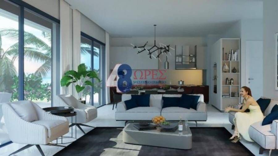 In Kontari of Chios, on the beach of the same name, marked with a blue flag, a maisonette with a total area of 209.70 sq.m. is for sale. This is one of the 23 Eco-Friendly houses under construction. This maisonette consists of the ground floor level, with an area of 123.60 sq.m., where we find a master bedroom with its bathroom, the reception area, a large and comfortable open plan kitchen - living room - dining room, the laundry room, the staircase and the main bathroom. On the first floor, with an area of 86.10 sq.m., there are three master bedrooms with their bathrooms. On this floor, the modern architectural addition of the empty floor is special. The particularly neat semi-outdoor spaces with a total surface of 117.2 sq.m., and balconies of 23.70 sq.m. offer moments of relaxation with an unlimited and unobstructed view of the sea and the landscaped recreation area with the swimming pool. The house has been built with environmentally friendly materials, the latest technology, thus making it ecological and energy efficient. It has a desalination system, photovoltaic panels, producing in this way the electricity that is consumed, underfloor heating from the leading REHAU company, excellent quality air conditioning, as well as electric windows and ALUMIL roller shutters, which open with the push of a button. Rounding out the amenities the property complex provides a BBQ, volleyball court and playground. The manicured garden and the 325 sq.m. swimming pool. they complete the elegant and luxurious image of the residence. This is an ideal choice of property, which can offer all the comforts, in a quiet and at the same time touristic area of Chios, very close to supermarkets, schools and shops, either for a permanent or a holiday home!