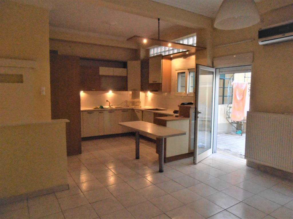 Ground floor apartment in a 2-storey detached house. The house consists of an apartment of 70 square meters. meters and a built-in garage of 15 sq. meters (which communicates with the house by an internal door) which can be integrated into the house and become a room or a separate independent studio or remain a garage. Total house area 85 sq.m. It also has an 18 sq.m. independent outdoor courtyard, which also has an auxiliary room that can be used as a laundry room or an office. The apartment has a single kitchen and living room, bathroom, 1 bedroom (possibility for 2nd), hall, loft, and storage. It has a 3.5 meter high ceiling garage with an electric garage door. The house was renovated in 2014 It has a solar water heater and independent oil heating. Quite an ergonomic house, with many utility rooms. Also ideal for commercial housing. Next to Memou square.