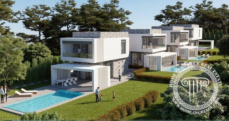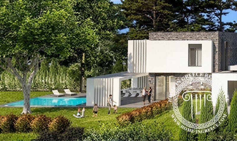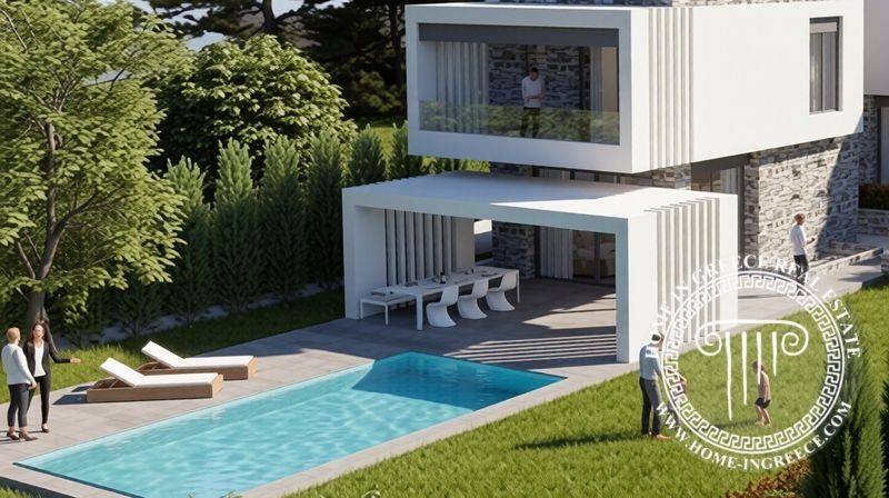 property code: 1204 - pefkohori, pallini (halkidiki) for sale villa 175 sq.m. on a plot of 300 sq.m., 3 levels, year of construction 2024, luxurious, with sea view, 4 bedrooms, living room, fireplace, 3 bathrooms + wc, kitchen, airy, facade, bright, pre-installation heating, air conditioning, energy class a, with marble floor - tiles, with aluminum frames, double glazing, screens, internal staircase, security door, alarm, cable tv, terrace, attic, barbecue, distance from the sea 600 m., pefkochori, halkidiki, three-level country house for sale, in a viewing location joining pefkochori with glarokavos, overlooking the sea and having east orientation. emphasis was given on the geometric shape and on the natural environment, with the alternation of local stone and white plaster, as well as the use of the external environment with lawn and plants of competitive aesthetics. an important parameter in the design is the aesthetics of the unification of interior and exterior spaces. quality characteristics: - stone wall construction according to modern specifications. - alumil frames series s560 with thermal switch, double energy glass panel and structura paint. - pergola with concrete structural elements with exclusive use of garden 300 sq.m. - swimming pool measures 3.5m x 7m, constructed with concrete and coated with tile and marble. -white color kitchen with paso island for dual use, in combination with oak wooden bench. the kitchen will be fully equipped with all brand name electrical appliances dealership (fridge, kitchen, oven, dishwasher, wine preserver). - each house has 4 rooms, 2 full bathrooms, 1 wc, living room and excellent outdoor space as continued to it, a useful pergola made of concrete, on which it is possible to place a bench ria 2.40m x 1m, 12 seats and corner living room 3, 5m by 3.20m. -placement of wardrobe in each room. - the property has two parking spaces. - alarm installation, satellite tv. - internal ethernet network in all the rooms and the living room. - cooling heating fan coil -solar heater 200 l. -electrical equipment of the company legrand. - the full package includes the furnishing and decoration of all exterior and interior spaces with the supervision and supervision of a decorator.