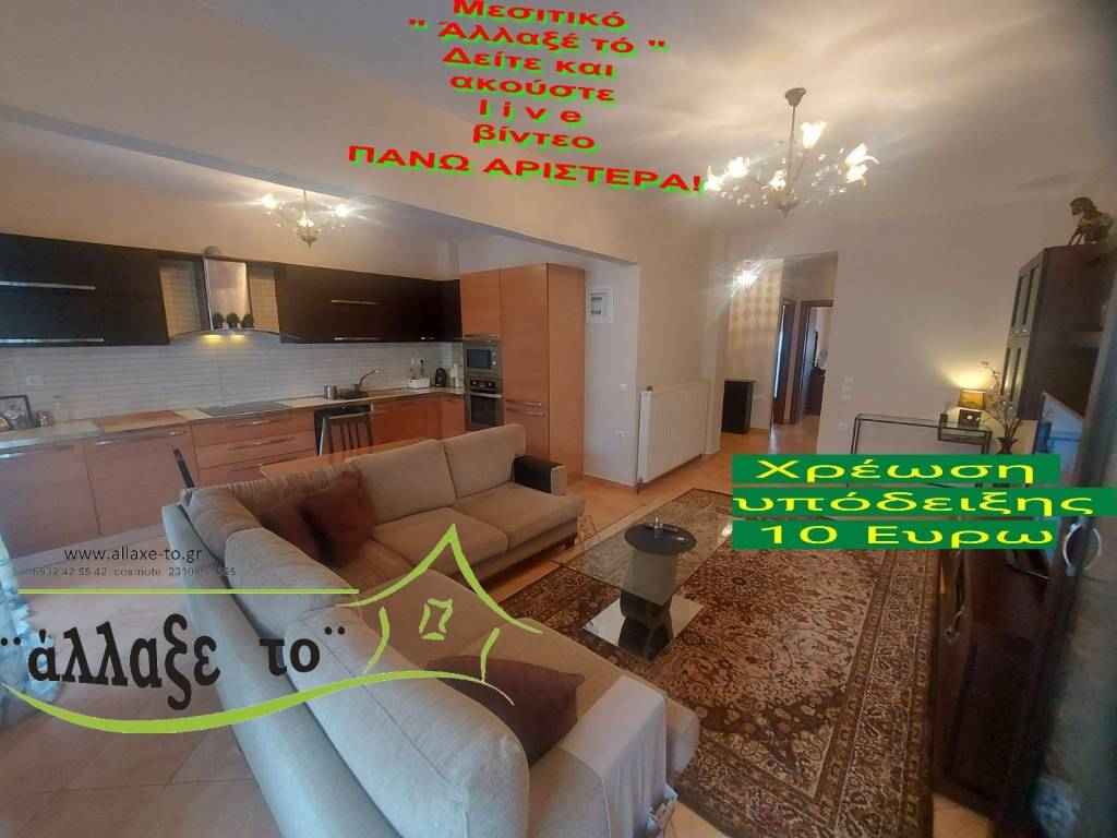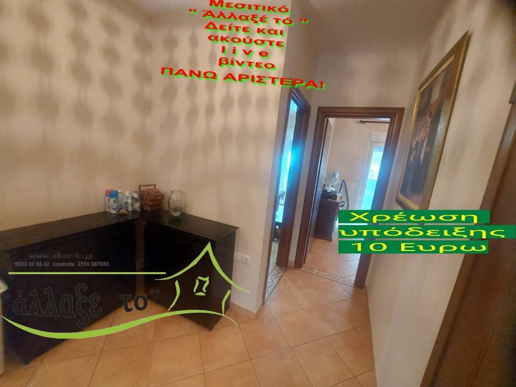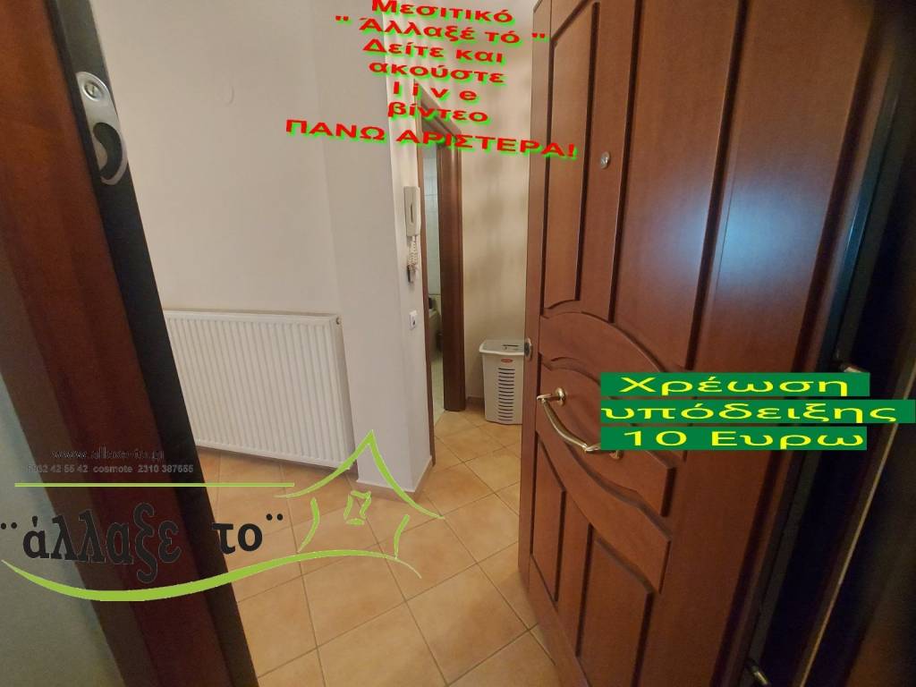 Check the video : https://youtu.be/7TnovV-0AHI The Presentation - suggestion of the property costs 10 €.(Including Taxes) If you liked the photos and the description, do not forget to watch and listen to the video! Watch and listen to the video as many times as you like here: https://youtu.be/7TnovV-0AHI or right and bottom to the end of the page. So you know from the beginning if it's worth to seeing it.. It's like you are within the home. SERVICES PROVIDED: The Presentation - suggestion of the property costs 10 €.(Including Taxes) Upon completion of the transaction, the above amount is deducted from the Brokerage Fee. The property is indicated by the demonstration of the police ID. The Presentation of the property at our office is free of charge. The Real Estate Change Office was created by Rania Pappa and Vassilis Kontelis, because when they were looking for a home, they were badly affected by ... realtors. Brokering fees is not the only thing that we care about. We love this job very much and we identify with you as if we were looking for a home for us ... Like Like on our Facebook page and see all opportunities here: https: //www.facebook.com/allaxeto.gr ΥοuTube : https://www.youtube.com/user/MsPaco75 Real Estate Office "Change it" Mobile phone for appointment: Vasilis 00306932425542 {cosmote,viper,what's app} Contact Person: Mr. Vasilis Kontelis Tel.: 00302310387655 Address: Riga Ferraiou 175 Sykies P.C. 56626 Thessaloniki Email: b-kontel@otenet.gr www.allaxe-to.gr
