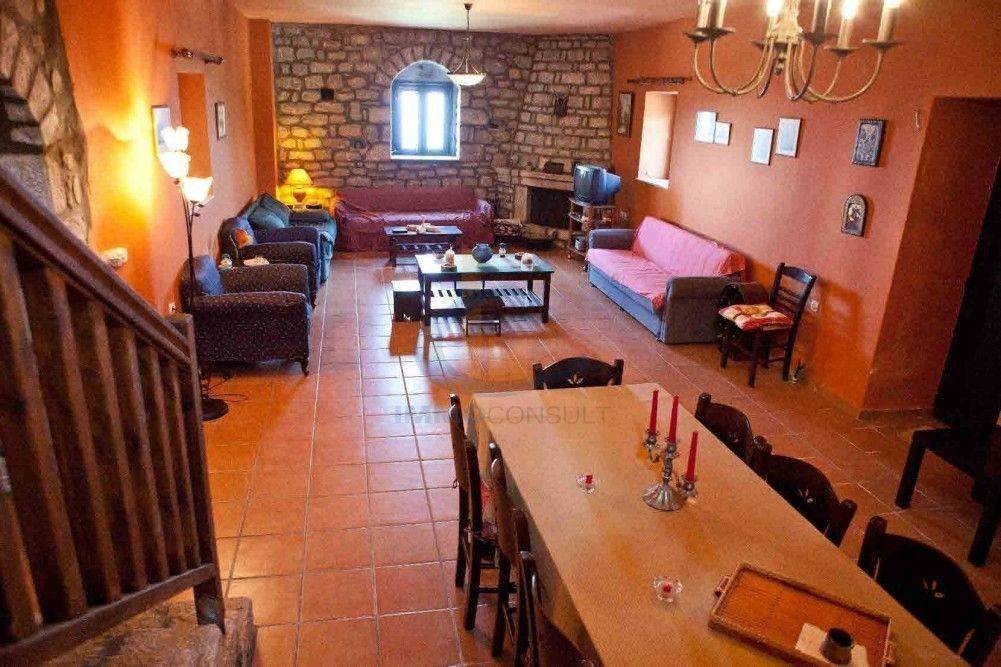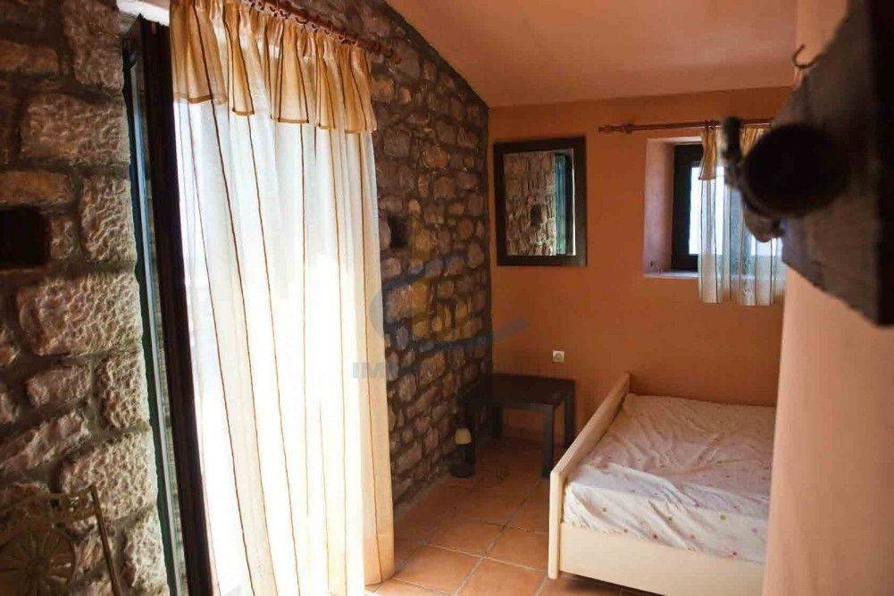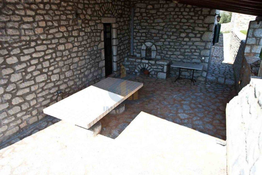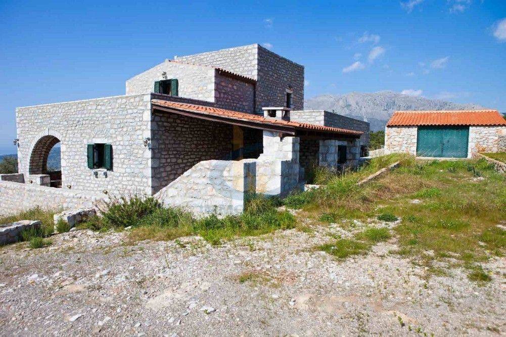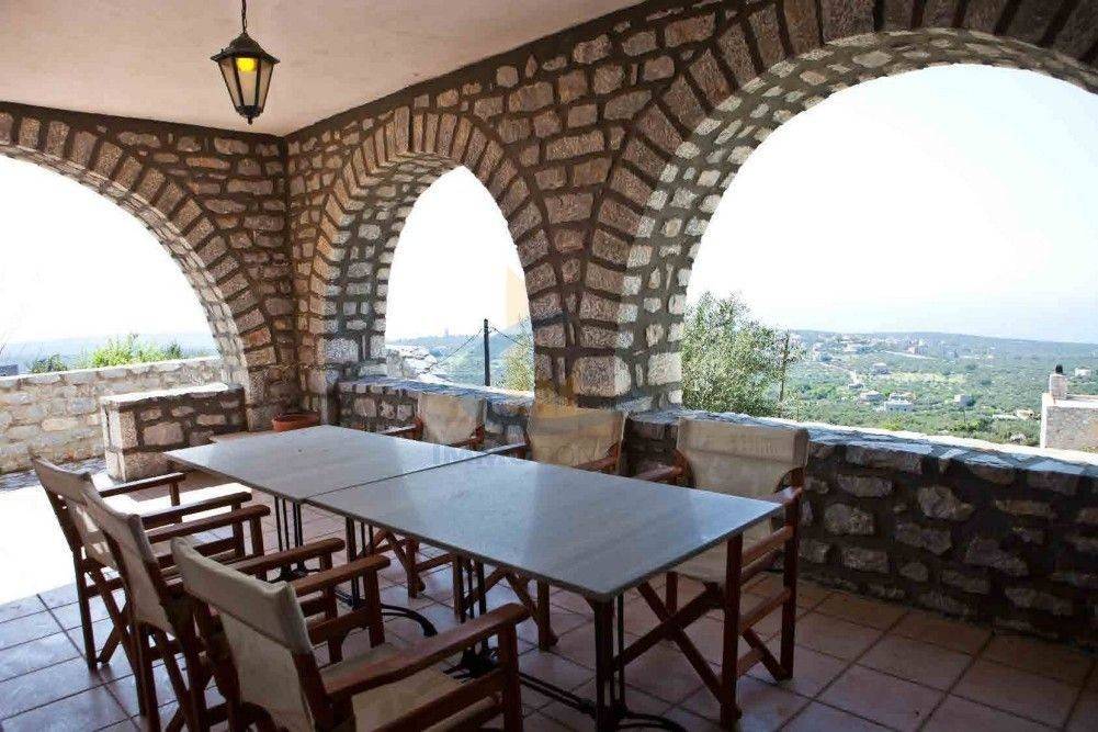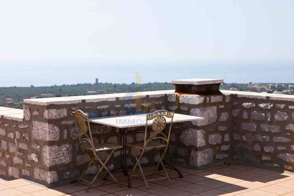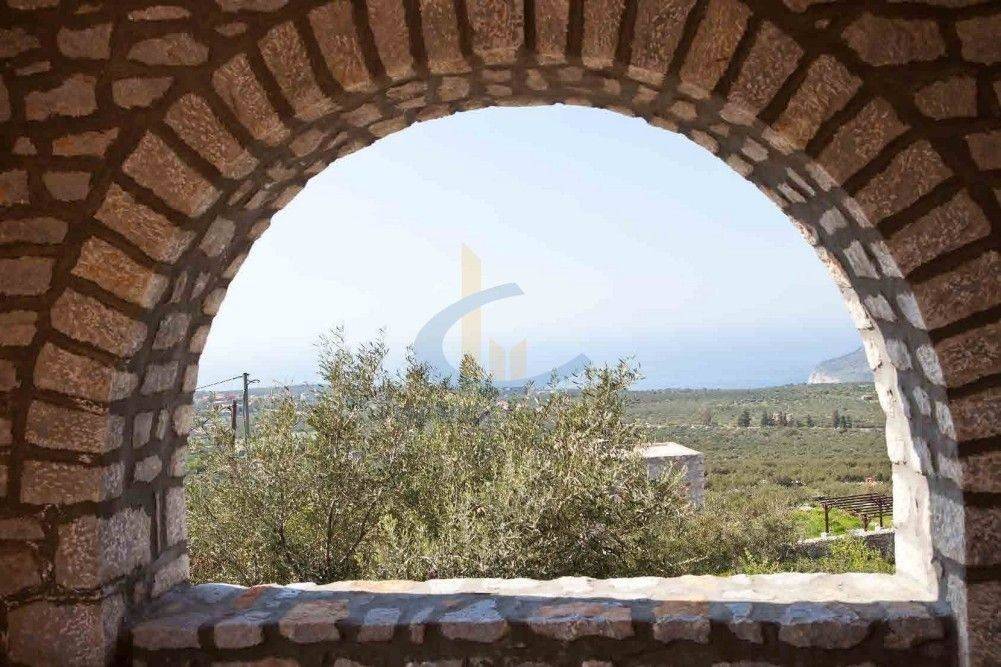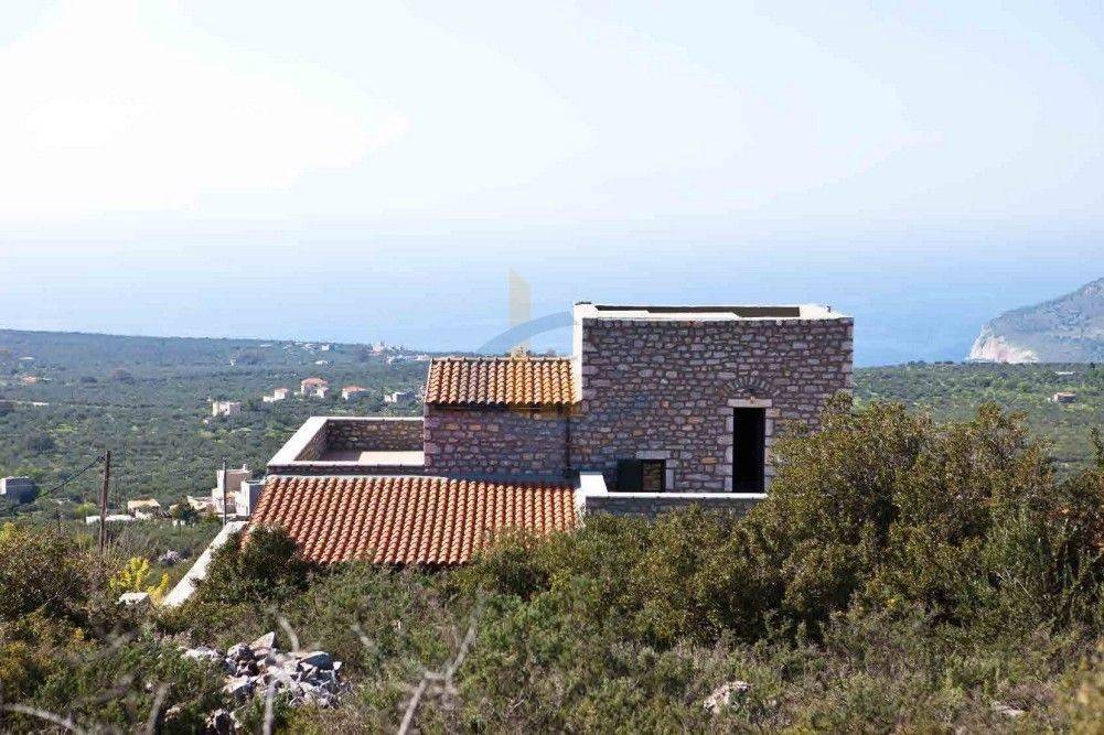 Newly built Stone-Built Two-Storied Villa-Tower with basement and garage on a plot of 2 acres. Total area 244 sq.m. of which the ground floor is 100 sq.m., the first floor is 64 sq.m., the underground warehouse is 40 sq.m. and the separate garage - storage area of 40 sq.m. and 5 m high with a tiled roof separate from the house. On the ground floor of the house are: the kitchen, the living room, one bathroom, two bedrooms and another room that can be used either as a bedroom or as a storage room.Also on the ground floor are the semi-outdoor space with the arches on the front side of the house and the loggia on the back side. On the upper floor is the tower which includes a room, a bathroom and doors leading to the sunrooms (porches), respectively the front and back sunrooms, as well as a staircase leading to the roof of the tower. There is also the tower house, the small house with the tile that rests on the tower. The house has a water heater, hood, electric generator, water pressure machine, installation for installing a radiator (bodies, burner and radiator boiler are not installed), TV antenna.It has a view of the entire Messinian Gulf from Kalamata to Cavo Grosso to Cape Tainaro.