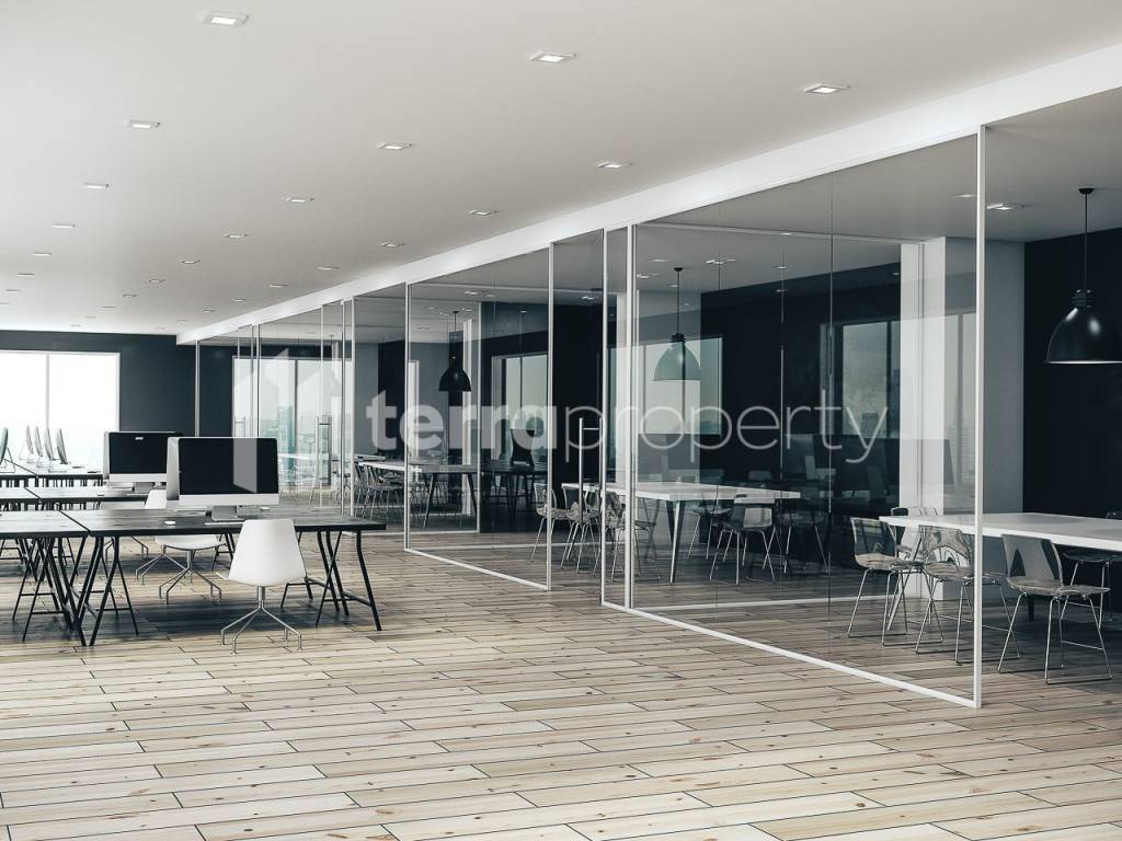 In Marousi, in an excellent location, luxury offices of 1,000 sq.m are available for rent. The offices have a reception desk, movable glass partitions that adapt to the needs of customers, a mineral fiber false ceiling, a kitchen and a WC with a waterproof false ceiling. In addition, a big plus is the unlimited view, while structured wiring, autonomous heating, fire extinguishing and fire detection system, elevator and garage are available. The photo is indicative and does not represent the property.