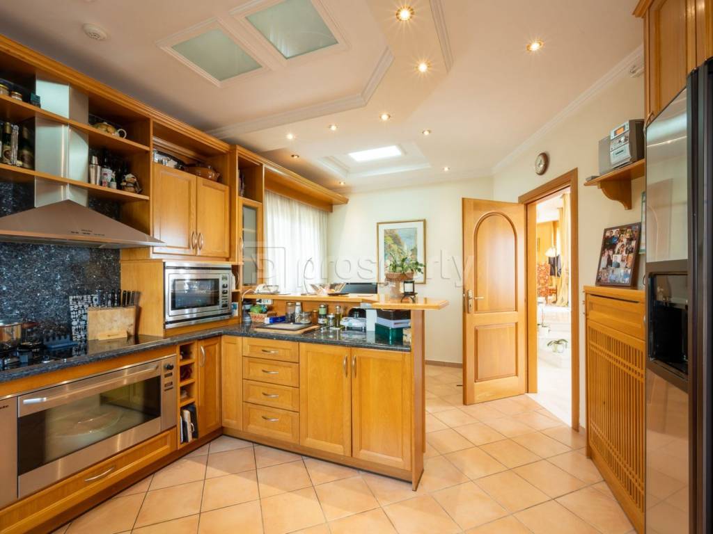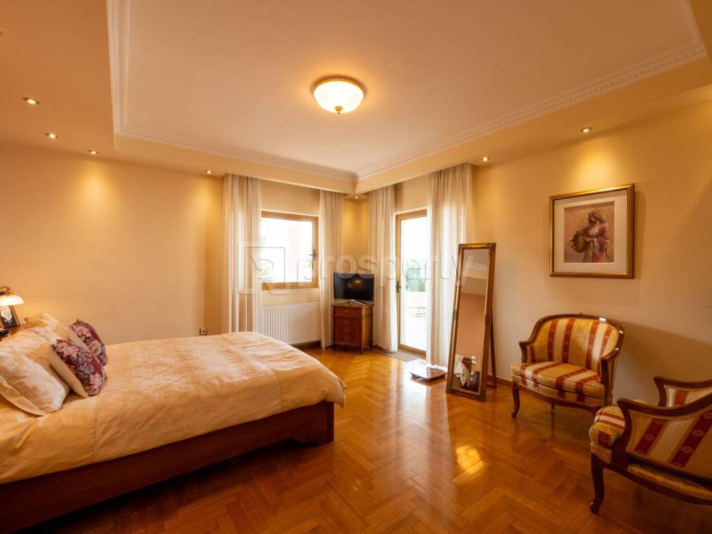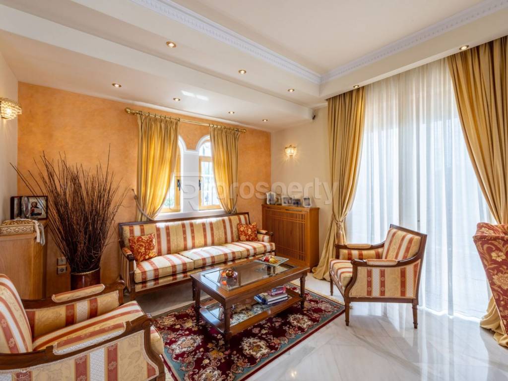 Wonderful property with a total area of 457 sq.m., located on a plot of 575 sq.m. with a garden. It consists of 3 floors, 5 bedrooms, 3 bathrooms as well as 2 W.C, fireplace, huge living rooms, dining room and separate kitchen. There is a separate living room located downstairs which could easily be converted into a separate apartment or play room. In addition, there is a warehouse, closed and open parking with a capacity of up to 4 vehicles. The spaces are covered with marble and wooden floors, solid doors, custom made furniture while oak has been used in all the built-in cupboards and wooden lighting fixtures. The house has 2 fireplaces, one in the main living room and one in the secondary one. The main area consists of a large dining room and sitting room and leads to the large wraparound terrace with stunning open views. The main bedroom has a walking closet, a bathroom and access to a sea view. The kitchen is separate from the dining room and living room. Year of construction: 2000. Additional facilities: air conditioning, independent oil heating, parking, storage room, maid's room, air conditioning, security door and security alarm. Located in an ideal location in Ano Glyfada, with a strong neighborhood feel, but just a few meters away from the local market, supermarkets, restaurants, cafes and public gyms. Within walking distance of Vouliagmenis and Poseidonos avenues, 2 minutes walk from bus stop and 5 minutes from local schools (private and public). It is a timeless and luxurious property, with large perimeter terraces and corresponding balconies, which is characterized by high aesthetics and very good construction quality. https://marketplace.theprosperty.com/listings/8216 ☎️ 210 6812500