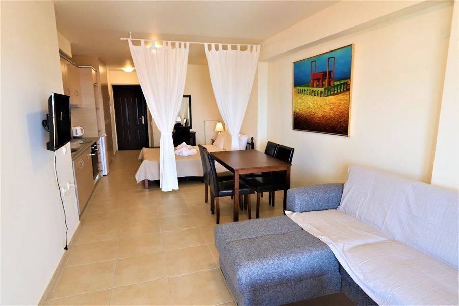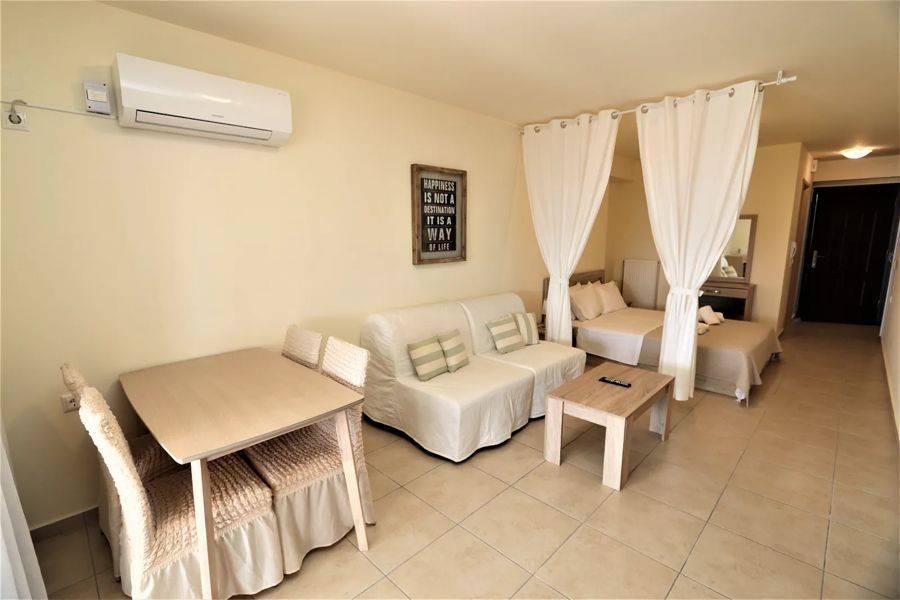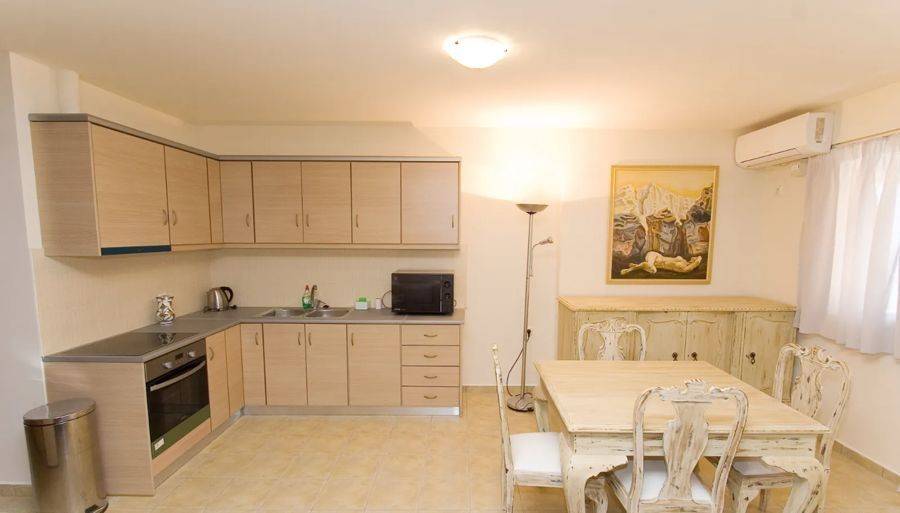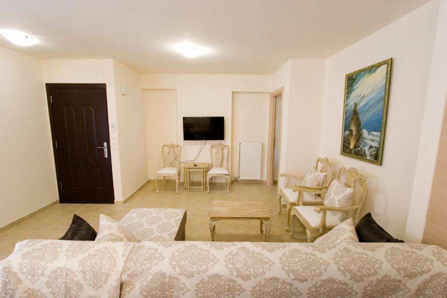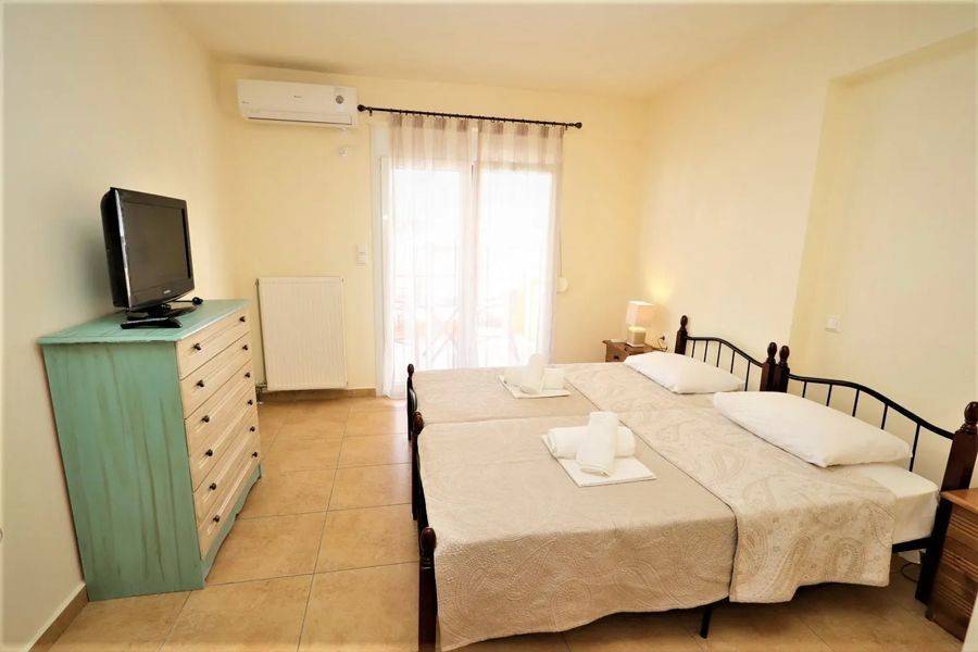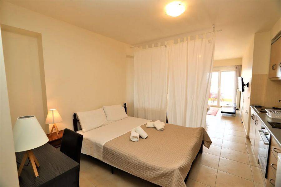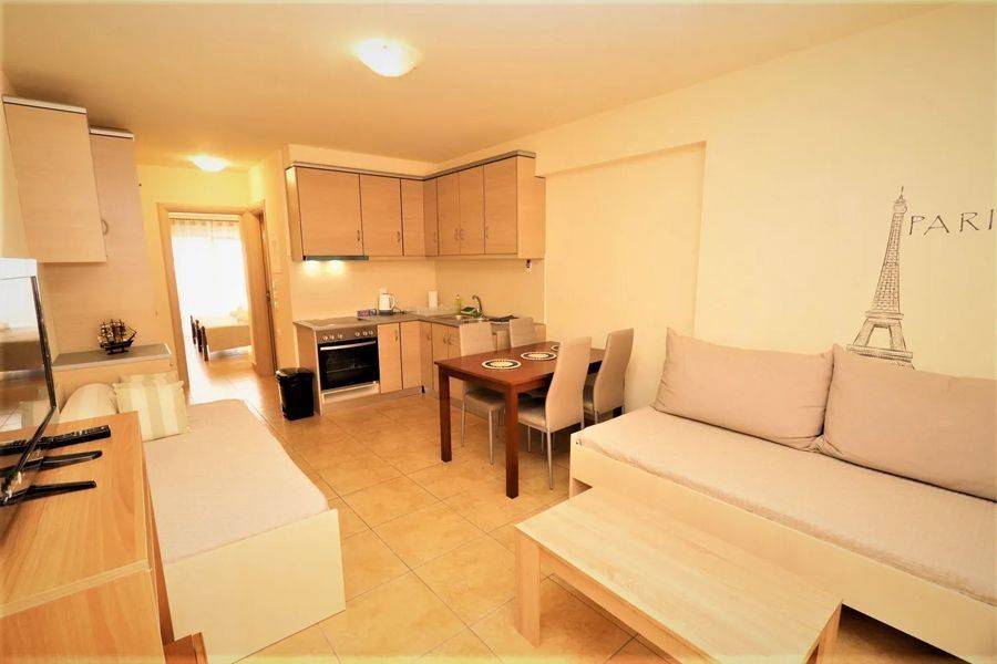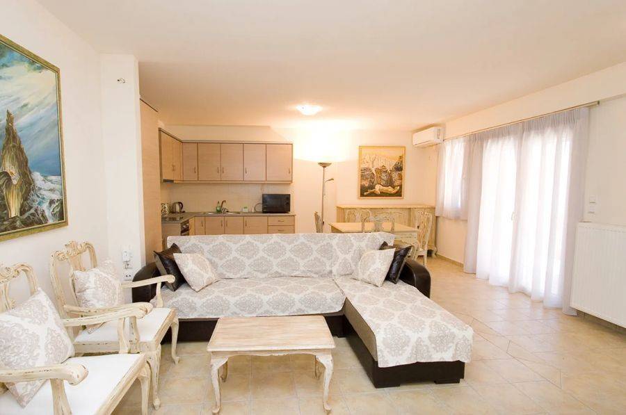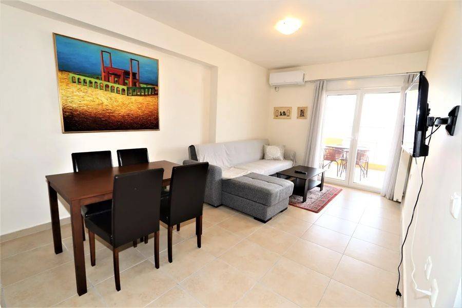 Edipsos, Loutra Edipsou - Apartment 82sqm plot 800sqm, fully furnished, bedrooms 2, levels 1, 4th, very good condition, year built 2010, energy class C, living room, kitchen, 2 bathrooms, heating type: autonomous (oil), air condition, parking ground floor, quiet, dual aspect apartment, luminous, panoramic view, balconies, elevator, aluminum frames, double glazed windows, ceramic tiles floors, night electricity discount rate, secure door, pets allowed, within city plan, residential zone, south-western orientation, access from asphalt, close to super market (up to 100m).