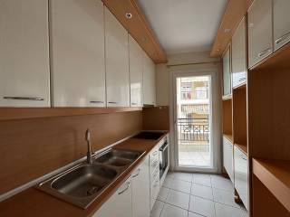 Bright apartment for rent, located 2 minutes walking distance from the center of Kalamaria (Pedestrian street), opposite bus stops and in the future 70 meters from the metro station. It is 92 sq.m (gross), with 2 bedrooms (with built-in wardrobes), 1 bathroom, and 1 open-plan living room and kitchen. It also features a built-in wardrobe in the hall, a new built-in oven, air conditioning, a fireplace, and natural gas. The apartment's bathroom (with shower) has been renovated (there is space for a 45 cm washing machine), as well as the external frames. Additionally, there is a new security door. The balcony is large and perimeter with awnings. There is a pilotis which has a parking space (upon agreement) and an elevator. For more information, you can contact me.