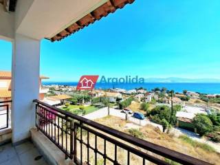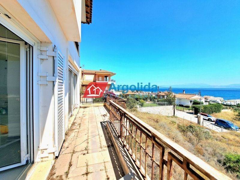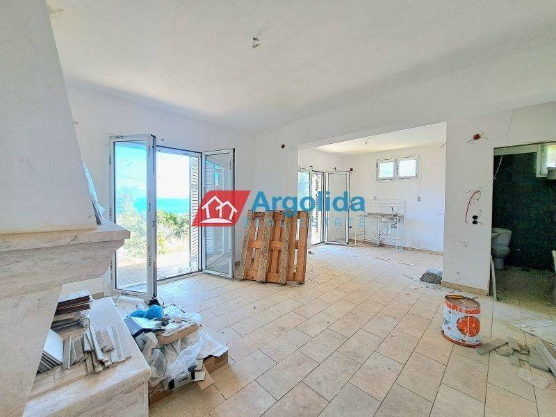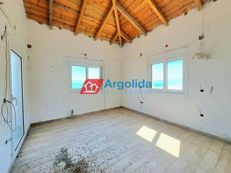 In Melissi, Xylokastro, in a privileged location and only 1,300 meters from an organized beach, a semi-finished duplex of 147 sq.m. is for sale, set on a 600 sq.m. plot, offering panoramic and unobstructed sea views from all levels with direct access to balconies. The main residence consists of a ground floor with an open-plan living and dining area with fireplace, kitchen and bathroom, while the upper floor features three (3) bedrooms and one (1) bathroom, providing comfort and functionality for family or holiday use. The independent semi-basement includes a living-dining area with fireplace, kitchen, bathroom, one (1) bedroom and an internal storage room of 3 sq.m., making it ideal for guests or for independent rental potential. Although the property is in a semi-finished condition, it already benefits from installed floor tiles, aluminum window frames, two (2) security doors, as well as pre-installation for solar water heater, heating and air-conditioning, significantly reducing completion costs. There is ample space for the construction of a swimming pool, parking areas, and remaining building capacity for a future second residence, adding strong investment potential. The property is located just 7 km from Xylokastro and its commercial center and 8 km from the suburban railway station with direct connection to the Athens International Airport, making it an excellent choice for a permanent home, a holiday retreat or a high-potential real estate investment.