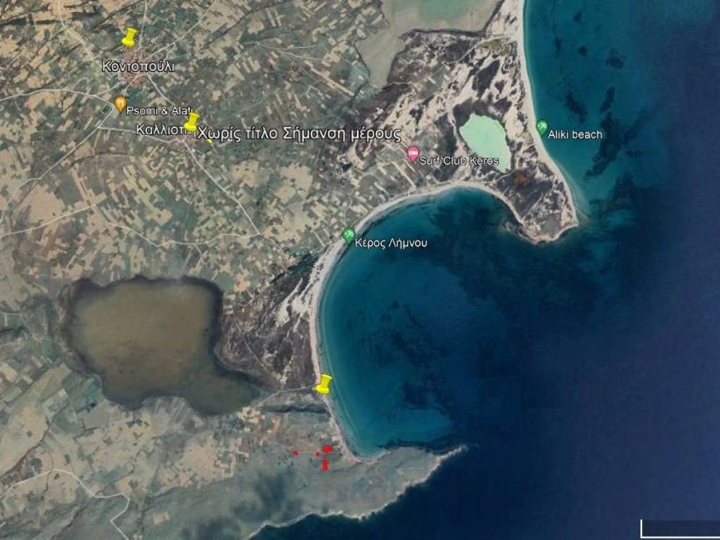 Plot of land 2866.11 sq.m. for sale on the beach of Keros tangent to the sea. It has a well.