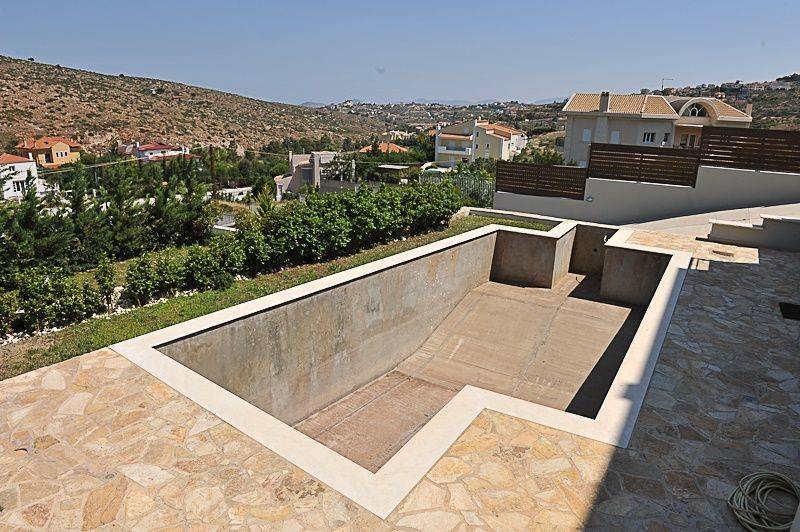 A modern house of 310 sqm on 4 levels with elevator is for sale in the Drafi area and consists of three houses connected to each other by the staircase and the elevator. These three apartments were designed to be independent or connected into a family home. Built in 2010 with quality materials on a sloping plot of 750 sqm, you will appreciate its panoramic view, garden and swimming pool. There are two closed and covered parking spaces. Very bright ground floor 104 sqm on the same level as the pool, which includes an independent apartment with its entrance from the garden. It consists of two living rooms (one of which is waiting for a kitchen), a bathroom, a bedroom, a small maid's bedroom and a cellar. On the first floor living room with fireplace and terrace, a fully equipped separate kitchen and a WC. On the 2nd floor, a beautiful master bedroom with its bathroom and wardrobe as well as the entrance to a 3rd apartment on two levels that includes a living room with a kitchenette, a bathroom and under the roof a large attic with its bathroom and its terrace. This small independent apartment also has its entrance from the garden. The district of Drafi is famous for its air quality and the beauty of its preserved natural environment, a car is essential for everyday life. It is located close to main roads and international schools. Athens can be reached in about 30 minutes by car or by the blue metro line, the nearest station of which is a few minutes' drive away in Pallini. Mobilia Real Estate, contact phone: 2107563200, 2107563202, email: info@mobilia.gr, website: www.mobilia.gr
