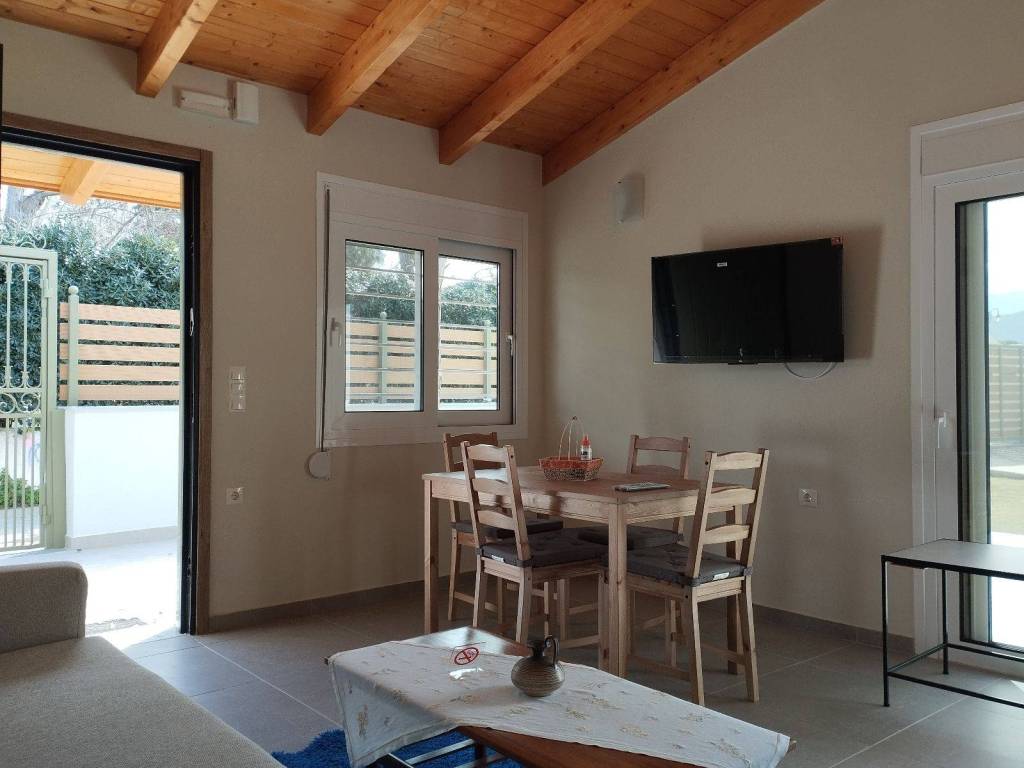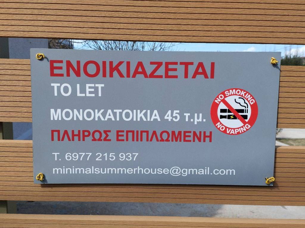 85 m from the sea, TV, - non-smoking residence June, July, August weekly 500 .e Minimalsummerhouse is built in a quiet location in the seaside village of Temeni and very close to the town of Aigion, and allows our guests to really live in the environment and landscape of an authentic Greek rural area with a valuable cultural history, in the seaside area of the Corinthian Gulf, just 80 m from the coast. the APARTMENT - It is a ground floor house that was reconstructed in a Minimal design, in the year 2023, only 45 sq.m. in a single space it includes the living room + dining room and the kitchen, while the closet separates the bedroom and the bathroom the LOCATION - Minimal is built in an estate with olive trees, in the seaside area of the Corinthian Gulf, just 80 m from the coast. the EQUIPMENT - it is fully equipped with everything that is necessary in a house and without creating excessive obligations for the tenants the neighborhood The village of Temeni has during the summer, seaside restaurants serving traditional Greek food. It offers the opportunity for nice walks and bicycle rides within the village. Mountain hiking also in the nearly mountains. The town of Aigion is 5Km away, a lively town with all sorts of amenities, down town shopping area, supermarkets, restaurants, bars and open air markets.