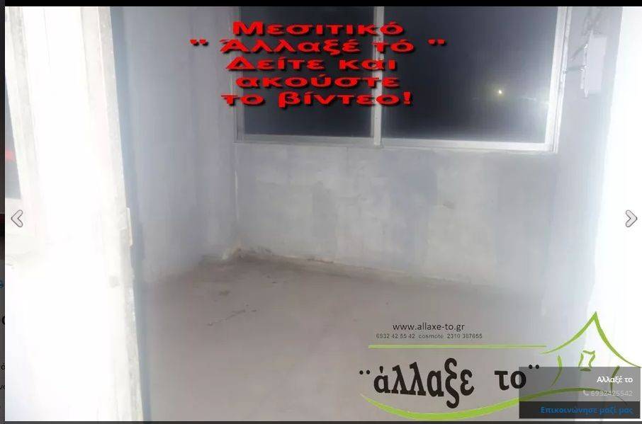 If you liked the photos and the description, do not forget to watch and listen to the video! Watch and listen to the video as many times as you like here: https://youtu.be/KaIrJnGInfk or right and bottom to the end of the page. So you know from the beginning if it's worth to seeing it.. It's like you are within the home. SERVICES PROVIDED: The Presentation - suggestion of the property costs 10 €.(Including Taxes) Upon completion of the transaction, the above amount is deducted from the Brokerage Fee. The property is indicated by the demonstration of the police ID. The Presentation of the property at our office is free of charge. The Real Estate Change Office was created by Rania Pappa and Vassilis Kontelis, because when they were looking for a home, they were badly affected by ... realtors. Brokering fees is not the only thing that we care about. We love this job very much and we identify with you as if we were looking for a home for us ... Like Like on our Facebook page and see all opportunities here: https: //www.facebook.com/allaxeto.gr ΥοuTube : https://www.youtube.com/user/MsPaco75 Real Estate Office "Change it" Mobile phone for appointment: Vasilis 00306932425542 {cosmote,viper,what's app} Contact Person: Mr. Vasilis Kontelis Tel.: 00302310387655 Address: Riga Ferraiou 175 Sykies P.C. 56626 Thessaloniki Email: b-kontel@otenet.gr www.allaxe-to.gr