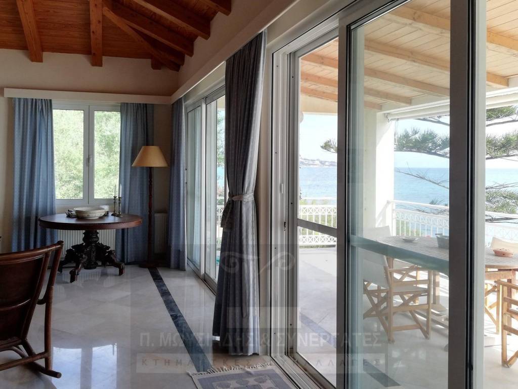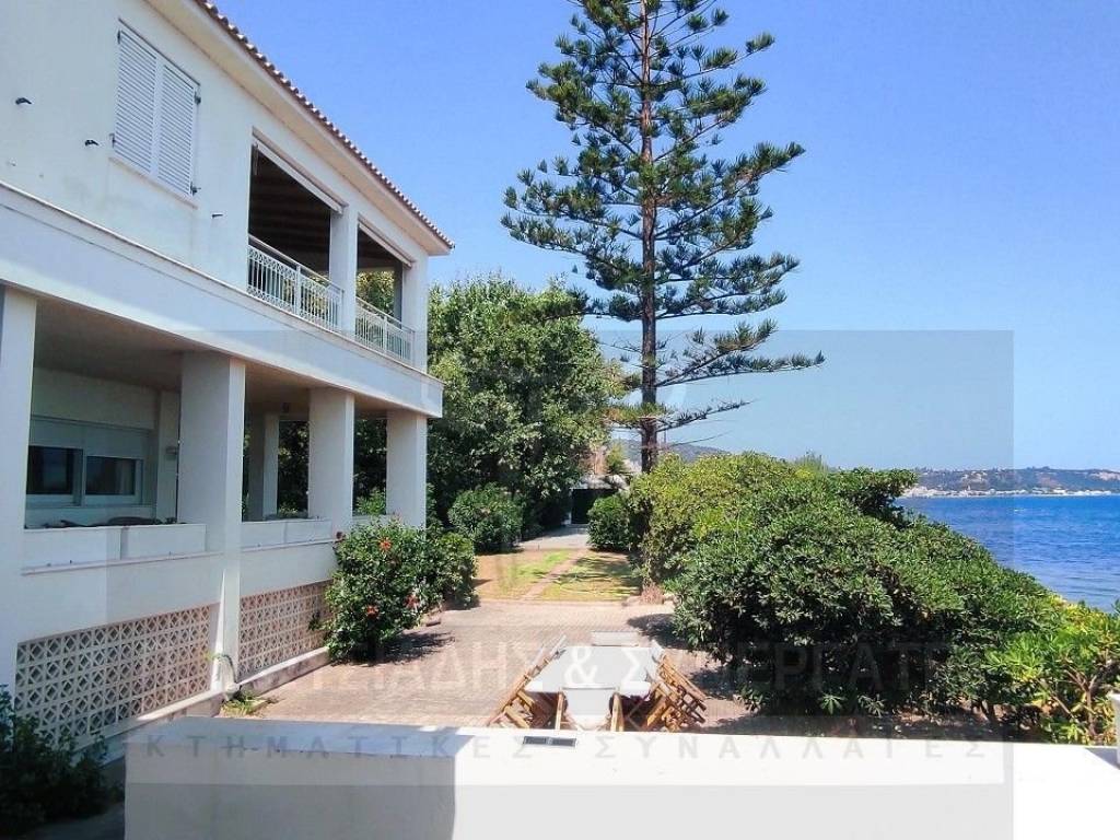 Ζάκυνθος, Αργάσι, υπέροχη παραθαλάσσια βίλα 494τμ (374τμ κύριοι χώροι + 120τμ βοηθητικοί) με επιπλέον 115τμ σοφίτα, οικόπεδο 1.300τμ, όμορφη κατασκευή 1974, ανακαίνιση 2001. Το ισόγειο163τμ αποτελείται από καθιστικό με τζάκι, κουζίνα - τραπεζαρία, δωμάτιο υπηρεσίας, ξενώνα, βεράντα 54τμ και κήπο με πρόσοψη στην παραλία. Στο ισόγειο έχουν διαμορφωθεί 100τμ ως ανεξάρτητο διαμέρισμα, με σαλόνι, κουζίνα, 2 υ/δ και 2 μπάνια. Ο 1ος όροφος 111τμ αποτελείται από 5 υ/δ, 2 μπάνια και βεράντες με πανοραμική θέα θάλασσα. Επίσης, υπάρχει σοφίτα 115τμ και ημιυπόγειος χώρος 120τμ laundry - αποθήκες. Διαθέτει πόρτες ασφαλείας, δρύινα πατώματα, μάρμαρα Διονύσου, δεντρόφυτο διαμορφωμένο κήπο, περίφραξη, θέσεις στάθμευσης, κατάλληλο και για τουριστική ανάπτυξη. Τιμή Πώλησης: 1.800.000€ Κωδ.: 13572