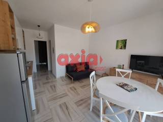 Eleftheres, Nea Peramos: newly built apartment for sale 40 sq.m. facade on the ground floor. It consists of 1 bedroom, living room kitchen and bathroom. It is in excellent condition, luxurious construction, airy, bright, built in 2024, and has synthetic frames with double glazing, security door, screens, solar water heater and garden. It is suitable for both private residence and tourist exploitation. Price without furniture €115,000 with furniture and electrics €120,000.| Property Code: #ΝΠ854