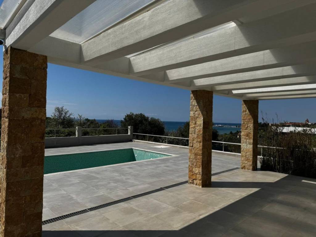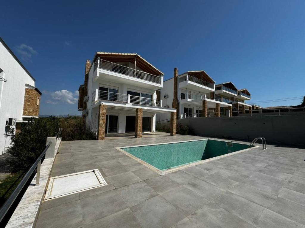 For sale is an amazing detached house of luxurious construction with a total area of 267 sq.m. with a private pool and unlimited sea view. The detached house is located in a complex of 5 houses just outside of Nea Moudania, Halkidiki. It is arranged in 4 levels (basement, ground floor, first floor and attic). On the ground floor there is a large living room - kitchen and a bathroom while on the first floor there are 3 comfortable bedrooms with 2 bathrooms (one of which is exclusively for the master bedroom). The attic consists of a single room, a wc and a large terrace with a magnificent view of the sea. The attic space can be used as another spacious bedroom or as an extra living room. Finally, the basement can be used either as an extra bedroom or as a playroom - home cinema, etc. More information upon contact.