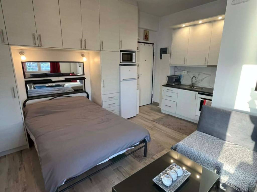 Πλήρως εξοπλισμένο και επιπλωμένο studio τρίτου ορόφου με απεριόριστη θέα στη θάλασσα.
