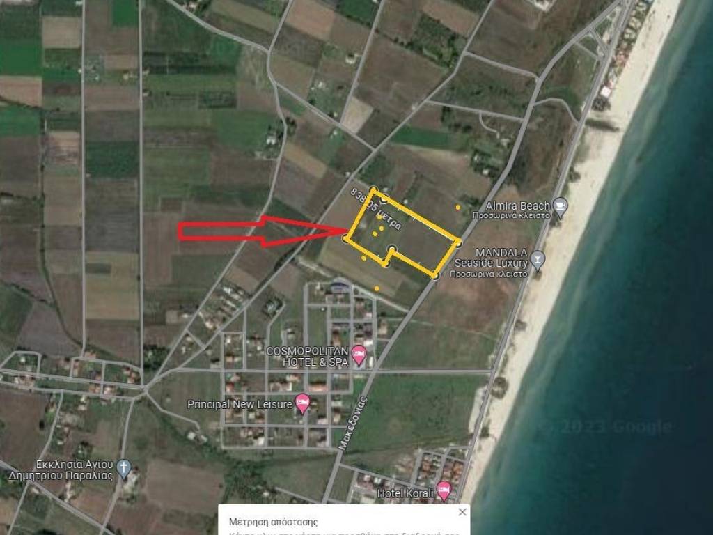 For sale in the area of Paralia, a plot of 34,000 square meters He is building a hotel unit of approximately 9,000 square meters