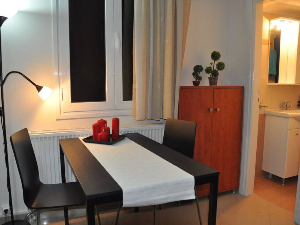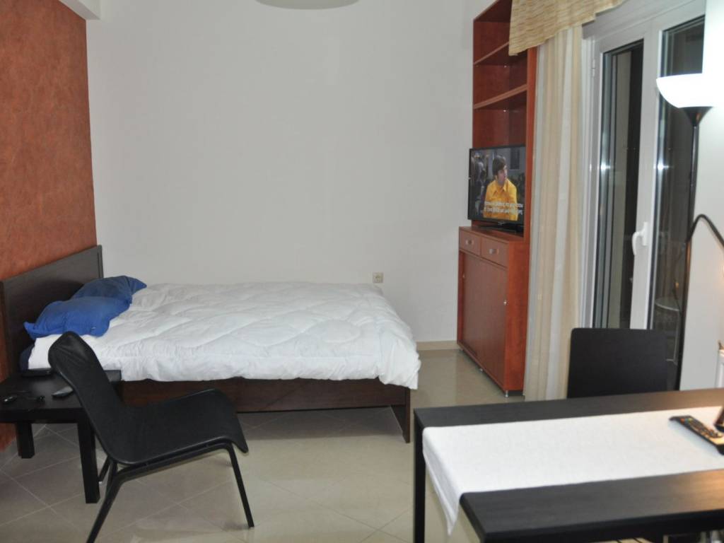 Wide view in a 13 sq.m. balcony and you can even see the Lykavito hill. Fully furnished with everything a house needs. A/C inverter, TV, washing machine, stove, fridge, dishes, pots and pans, etc ... even an iron and ironing board. Corner suite, quiet, ideal for students. Free street parking for residents only. Recently renovated.