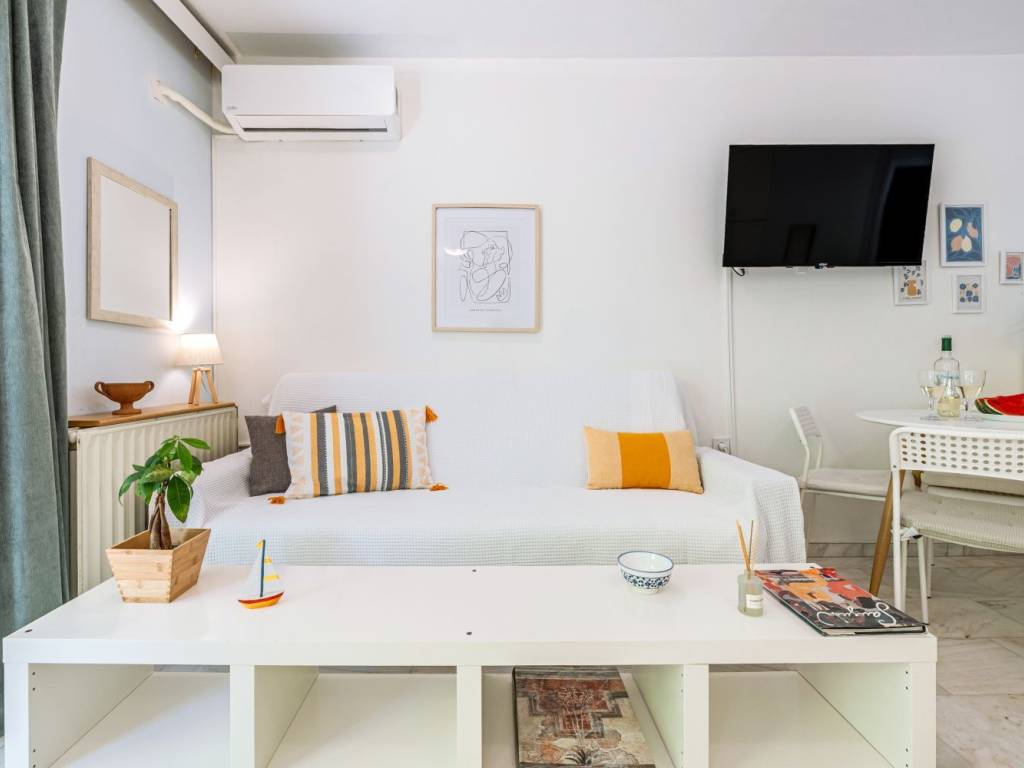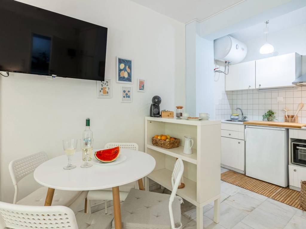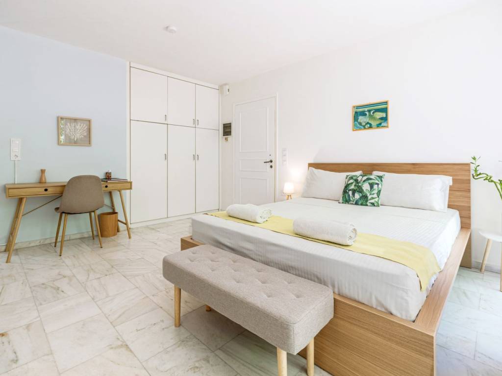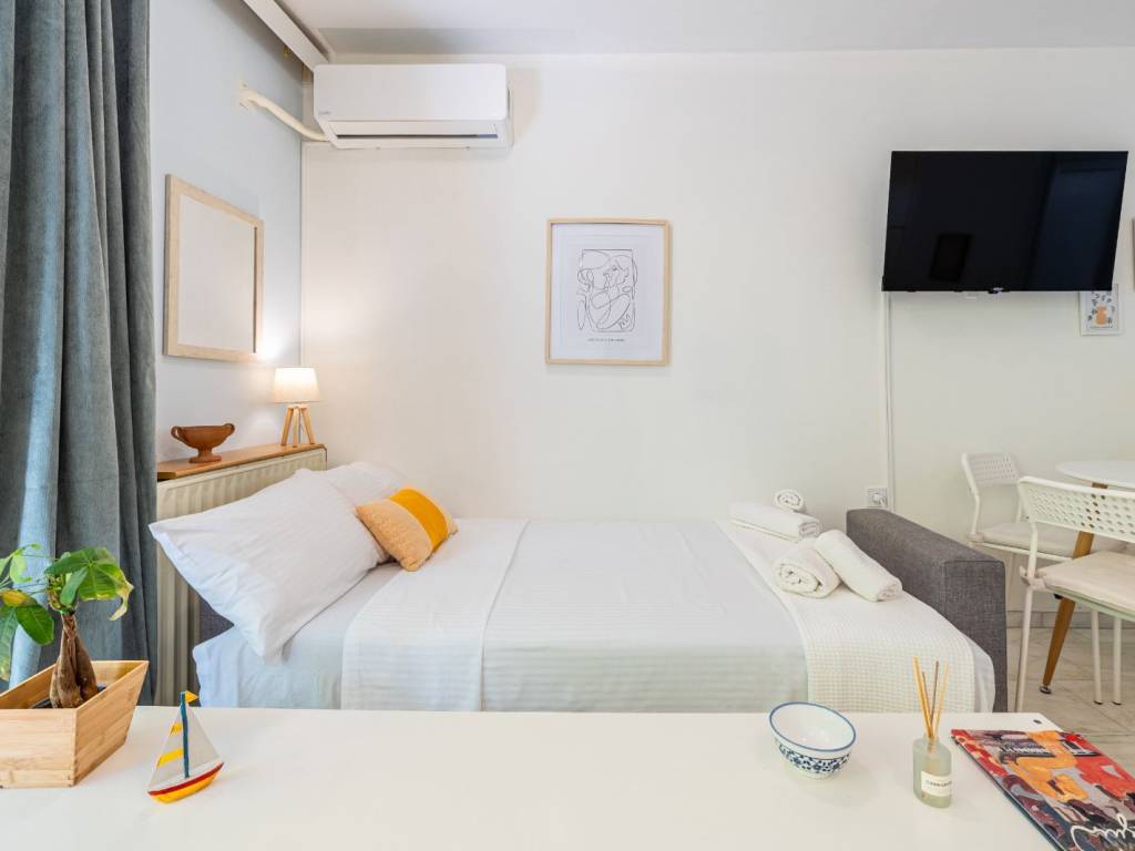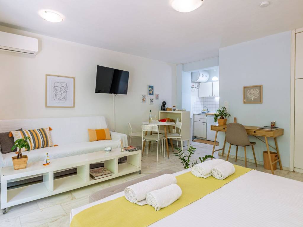 A lovely, spacious, self contained,renovated, garden studio 35 s.m with an awsome, full private, spacious, sunny deck veranda 25 s.m. with relaxing mediterannean garden views of lemon /pomegranate trees and cretan herbs. It is ideal for one person for a mid term stay until end of June 2026 max. for remote work, studying, travelling or working in the capital of Crete, Heraklion city, just 10-15 min. walk far from the city center or 10 min drive far from sunny, sand beaches. Long term stay is negotiable. In this retreat style apartment, located in Mastambas, in Stergiogianni street, in one of the most privileged, safe residential areas of Heraklion, you will have the oppurtunity to live like a middle -up local, in a thoughtfully designed, well accomodated, with all comforts accomodation. . Amenities: A.C, 12.000 btu / 43 smart TV/ high speed Wi- Fi /desktop/ bookcase/ queen bed/ sofa bed/ dining table/ chairs/ outdoor furniture/ washing machine in house/ induction stove/ oven /fridge / toaster /espresso machine /Kettle/ hot water supply/ Kitchenware/ linen /hair dryer/ iron /drying rank /electric vacuum/ cleaning equipment, built in wardrobe/mosquito net. The neighborhood has everything nearby: In the area there are 2 large supermarkets, gym, bakery, grocery, meat/fish market, cafes, restaurants, pizzeria, souvlaki restaurant, bus/ taxi stations, pharmacies, bookstores, wellness services.. You will need only 5 min walk to reach Eukalyptus, the largest green park area of the city, the famous Venetian walls for long walks above the city with marvellous sea views and the Cultural Conference Centre of Heraklion too. All you need to bring is your personnal belongings.. The apartment is allready available. The rent is 550 euros /month for a mid term stay until end of June. The price for electricity, hot water supply by electric heater, water supply, common expenses and high speed wifi will be plus +190 euros/ month. There is also the availability to rent a private parking place in the building for 4 euros/day. Please contact via +30 6944950683 for availability or any further information.