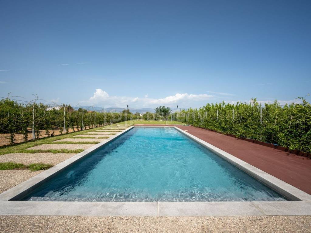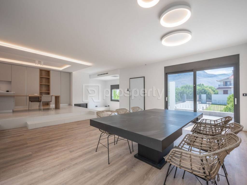 For sale, a luxurious holiday villa of 293 sq.m. on a 1,600 sq.m. plot in the beautiful area of Rodia, Diakopto, Achaia. This newly built property, completed in 2024, features modern architectural lines and high-quality materials that exude elegance and timelessness. The residence includes 3 spacious bedrooms, two of which are master suites with walk-in closets and complete privacy, as they are located on separate levels. The fully equipped kitchen is connected to the spacious living area in an open-plan design, creating a welcoming space with an energy-efficient fireplace. The multi-level layout of the ground floor offers a unique sense of comfort and luxury. Additionally, the home is equipped with "smart home" technologies, fan coils, and underfloor heating and cooling via a heat pump. The exterior features an impressive 48 sq.m. pool, surrounded by a high-quality deck, while the fully equipped barbecue area and beautifully landscaped garden create the perfect atmosphere for relaxation and entertainment. The property also includes a photovoltaic installation, offering energy autonomy and environmental friendliness. This is a unique opportunity for those seeking luxury, comfort, and complete privacy in a prime and peaceful location. https://marketplace.theprosperty.com/listings/9101 ☎️ 210 6812500