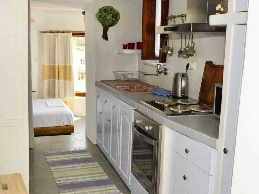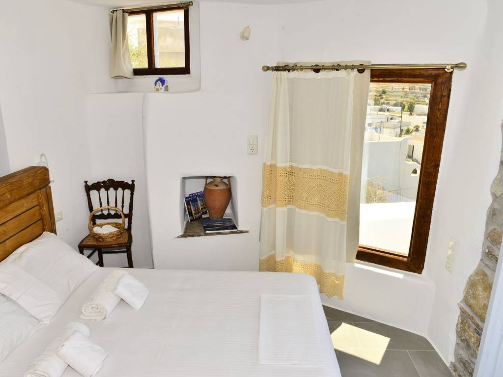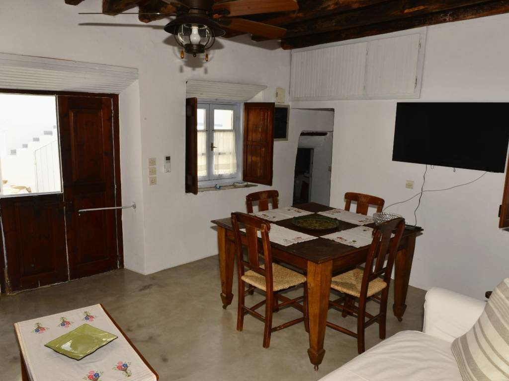 Fully furnished traditional Cycladic villa for rent in Galanado Naxos, 80 sqm, inside of a traditional village. The house's date of first purchase is 1852. It has been renovated several times since and it has been completely remodeled, operating for the last four years as an Airbnb with clientele almost exclusively from abroad. Therefore, the photos of its spaces and facilities and the excellent reviews it has received can guarantee for what is described below. Facilities: 2 new air conditioning units, TV in the lower bedroom, fireplace in the upper bedroom, luxury bedding, full kitchen with fridge-freezer and every necessary electrical appliance and cooking utensils, dining area, full living room with ceiling fan, smart tv, landline phone and internet, 7 kg washing machine, king size beds in both bedrooms, outdoor shower, patio seating, outdoor umbrella but also outdoor furniture for sunny days. Layout: Heating in winter is achieved by the two air conditioners, the fireplace in the bedroom and portable radiators. In summer the privileged position of the house at the upper end of the village, combined with its orientation and its construction materials provide coolness and airflow at all hours, combined with the two air conditioners and the ceiling fan. The house is located just 15' from all the famous beaches of the west side of the island (Agia Anna, Agios Prokopios, Plaka), 15' from the port and the center of Naxos town (Chora), 15' from the airport of the island, in the first village (Galanado) that we come across on the main provincial road that leads up to the villages of the mountainous Naxos (Chalki, Filoti, Apeiranthos). It is located at the upper end of the traditional settlement of Galanado, just a 100m walk from the upper parking of the village. Both the parking lot and the house are visible on Google maps. The village, apart from its picturesque alleys, drinking water springs and scenic squares, sports a Kindergarten and a tavern-cafe-traditional grocery store for basic necessities. Its location, apart from the unobstructed view of the bay and Chora, Paros and Syros, offers absolute tranquility and guaranteed parking even for more than one vehicle at a time. At the same time, it combines privacy and easy access to the town, supermarkets and other services, the vast majority of which are located on the main provincial road. The price does NOT include bills (internet, telephone, electricity, water). There isn't a utilities fee. Pets are welcome, with the tenant's care that they respect the furniture of the space. Available for long term lease.