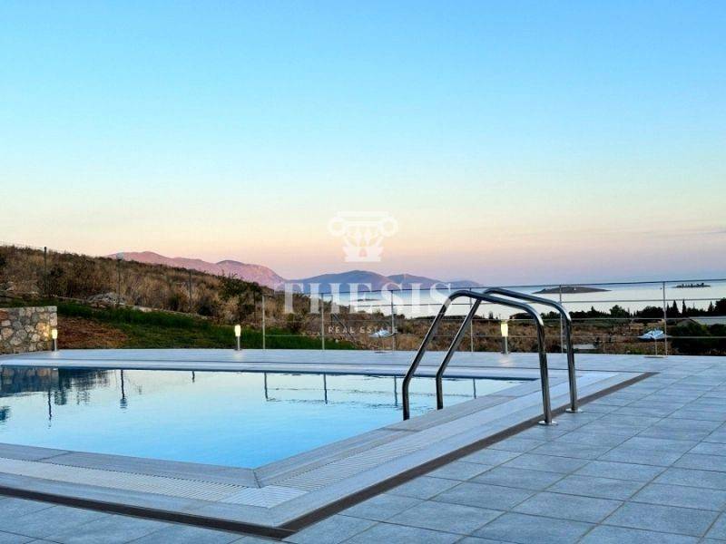 Property code: 831727 - Galaxidi Agioi Pantes FOR SALE newly built luxury villa with a total area of 174 sq.m. on a plot of 700 square meters, in an area of unique natural beauty, with a panoramic view of Galaxidi and the sea and right next to a traditional olive grove. It consists of 3 bedrooms, living room, kitchen, 2 bathrooms, parking for 3 spaces. It was built in 2024 and has an open horizon view, aluminum frames, tile floors, security door, built-in wardrobes, parking, 4x8 swimming pool. It is a 5-6 minute walk from the sea and less than 1km from a blue flag beach.• In case you want the villa to be ready for use, i.e. furnished kitchen, furnished bathrooms, equipped and operational swimming pool (the mechanism remains to be installed), four air-conditioners etc. with an additional cost of €55,000. A total of €350,000 - Price: €295,000