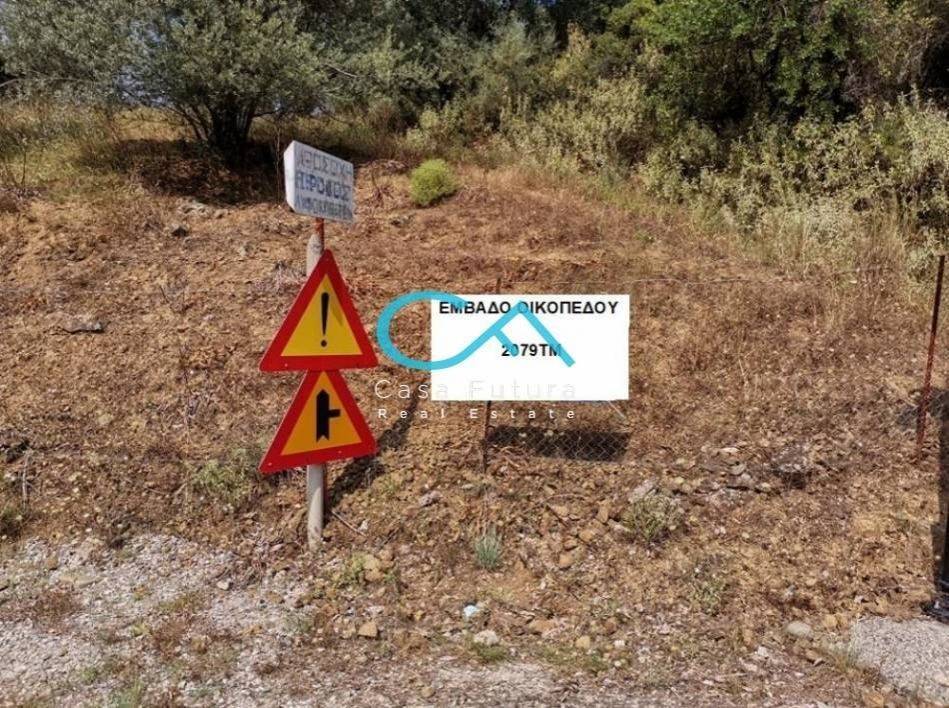 ID: #39-7385 - Fokida, Efpalio: FOR SALE inclining plot 2079sqm facade with a Coefficient Building of 0.1924001924001924, Buildable area 400sqm, Coverage Ratio 60% and can build up to 400sqm. It is located in a residential area and its zoning is residential with a great view. It is located 3km away from the sea, 500m from the nearest village, 9km from the nearest town. The asking price is 55.000€.